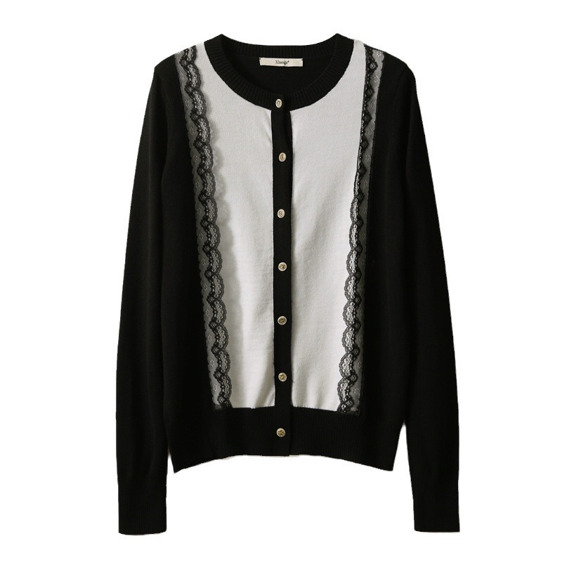 Женский свитер на весну и осень 2025 года, корейский стиль, длинный рукав, утягивающий, с кружевными вставками, круглый вырез, вязаный кардиган.