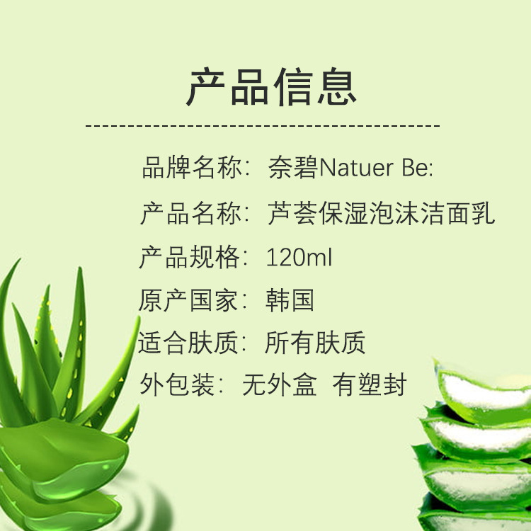 Главная страница > Natuer Be Aloe Vera Foaming Cleanser 120 мл Глубоко очищающее увлажняющее мягкое очищающее средство для лица