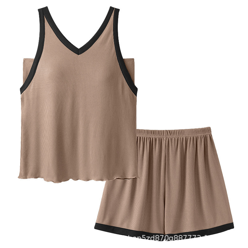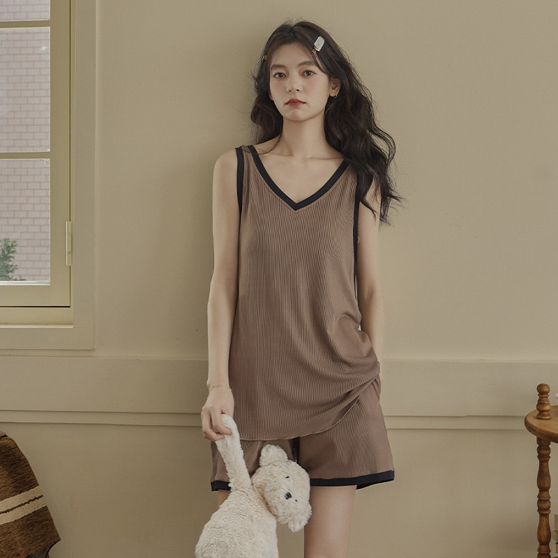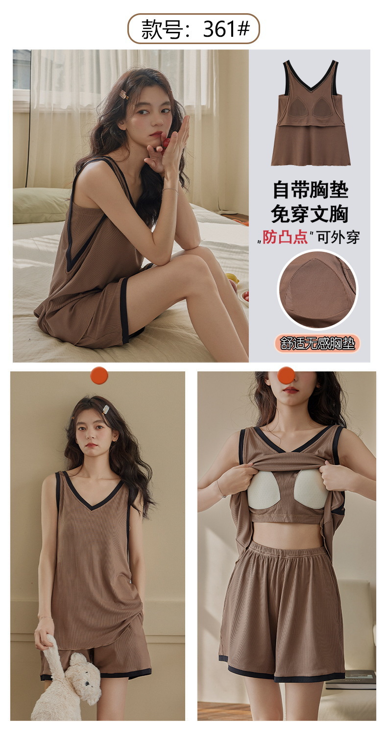Главная страница > Ночная рубашка на бретельках, летняя новая стильная однотонная свободная пижама из ледяного шелка с подкладкой для груди, женская летняя домашняя одежда