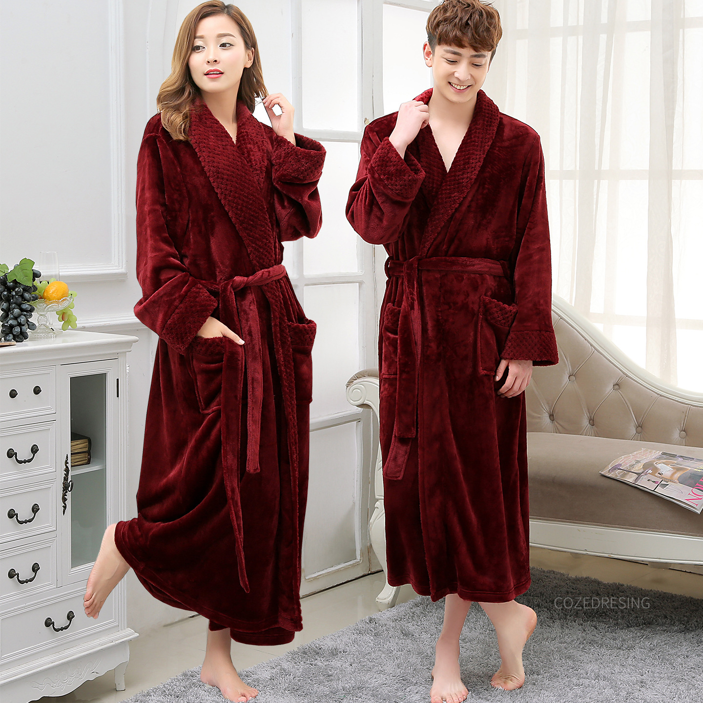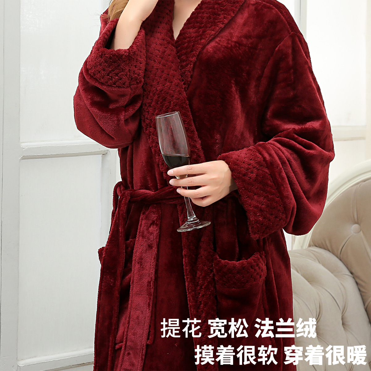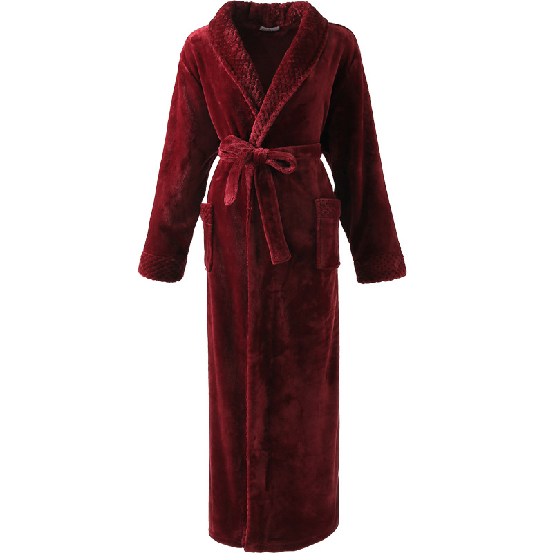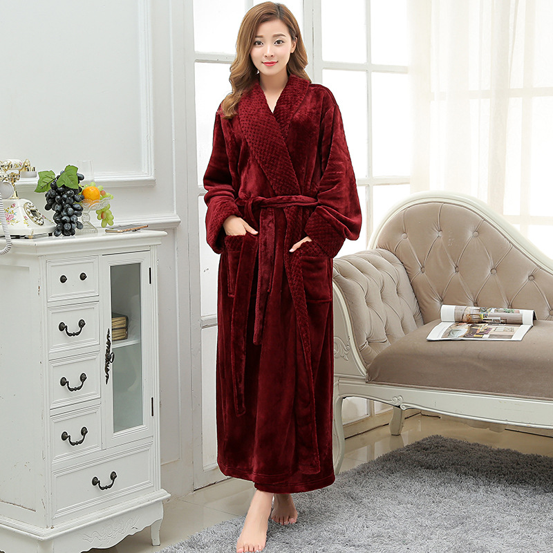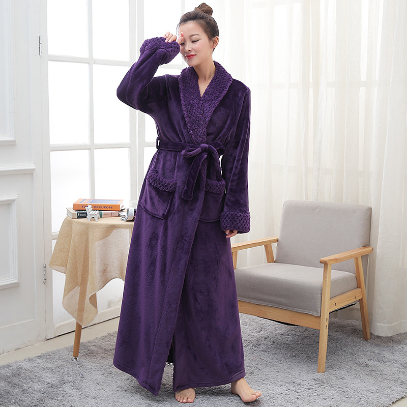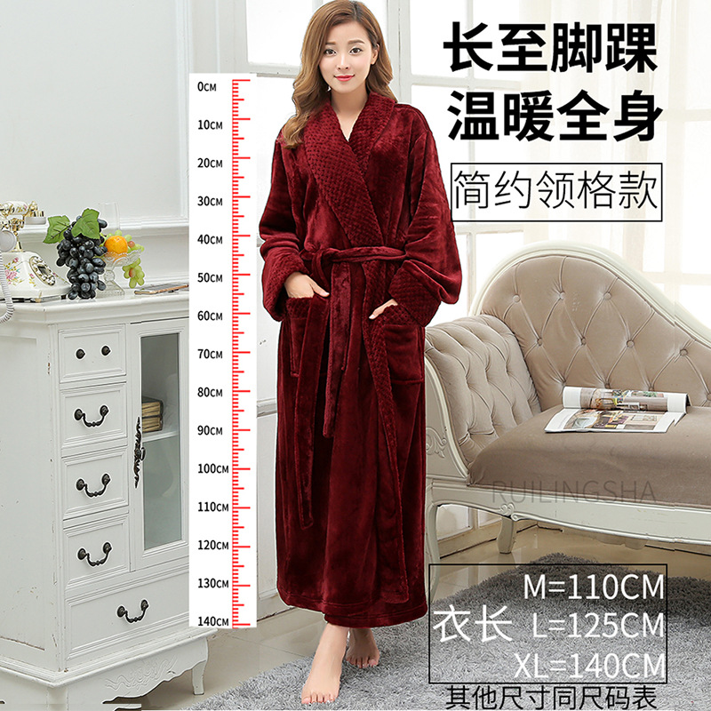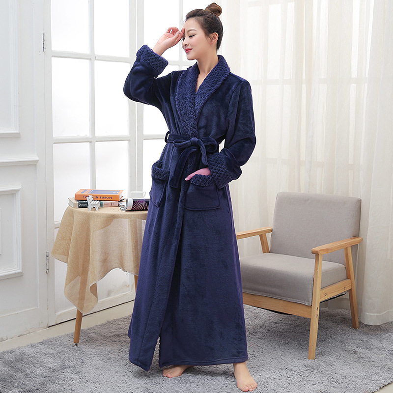 Главная страница > Плотный теплый фланелевый халат для пар на осень и зиму, женский длинный халат с жаккардовым воротником, мужской халат большого размера, пижама из кораллового флиса