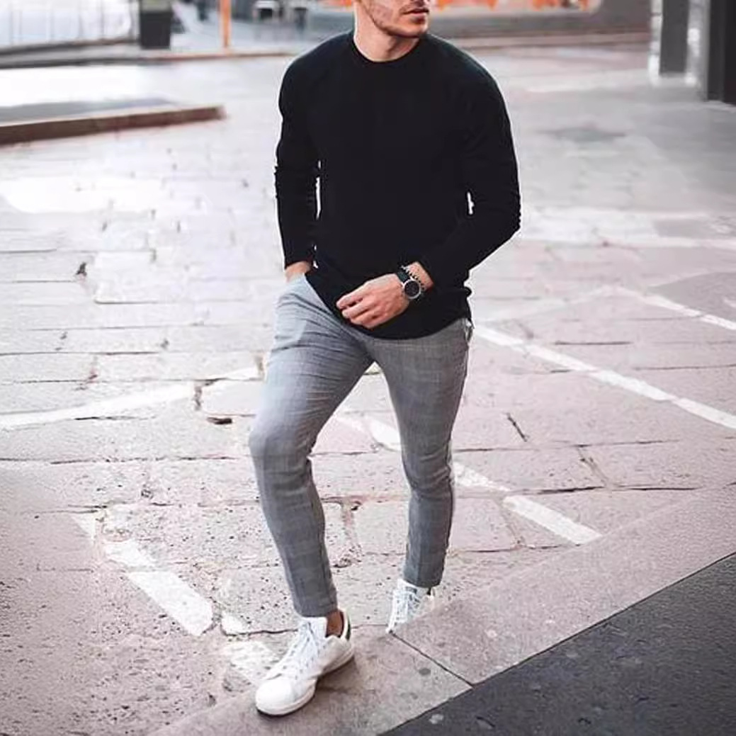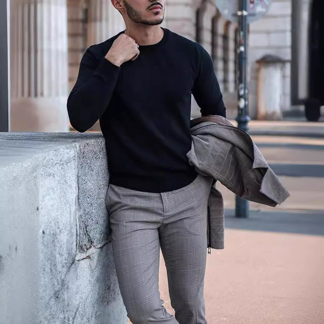 Главная страница > Мужская трикотажная одежда, осенне-зимняя однотонная Модная брендовая Базовая рубашка с длинными рукавами, теплый Модный повседневный внутренний свитер для мужчин