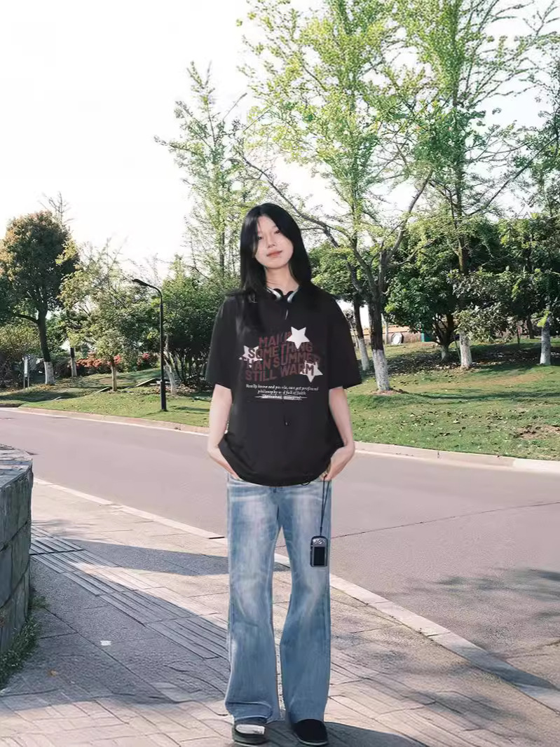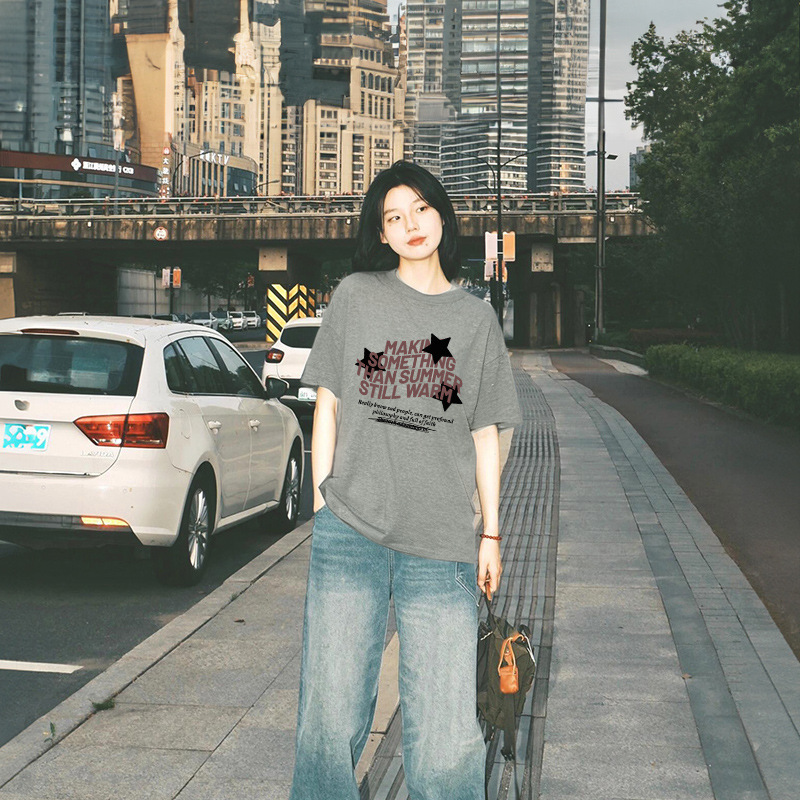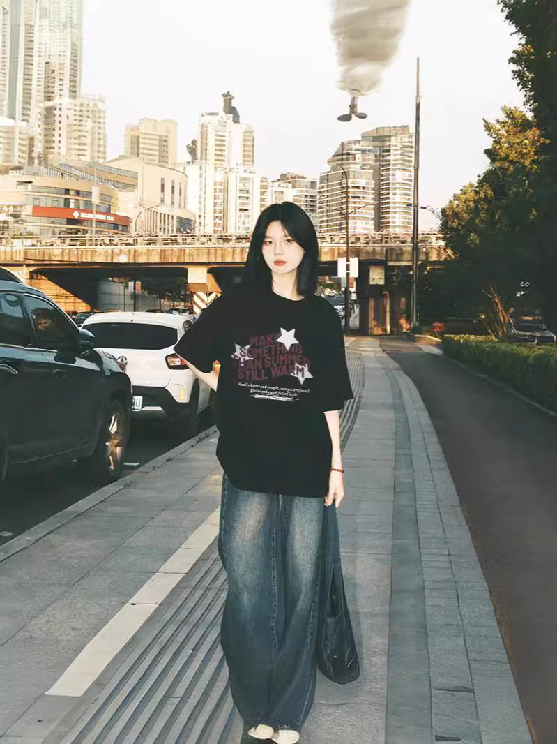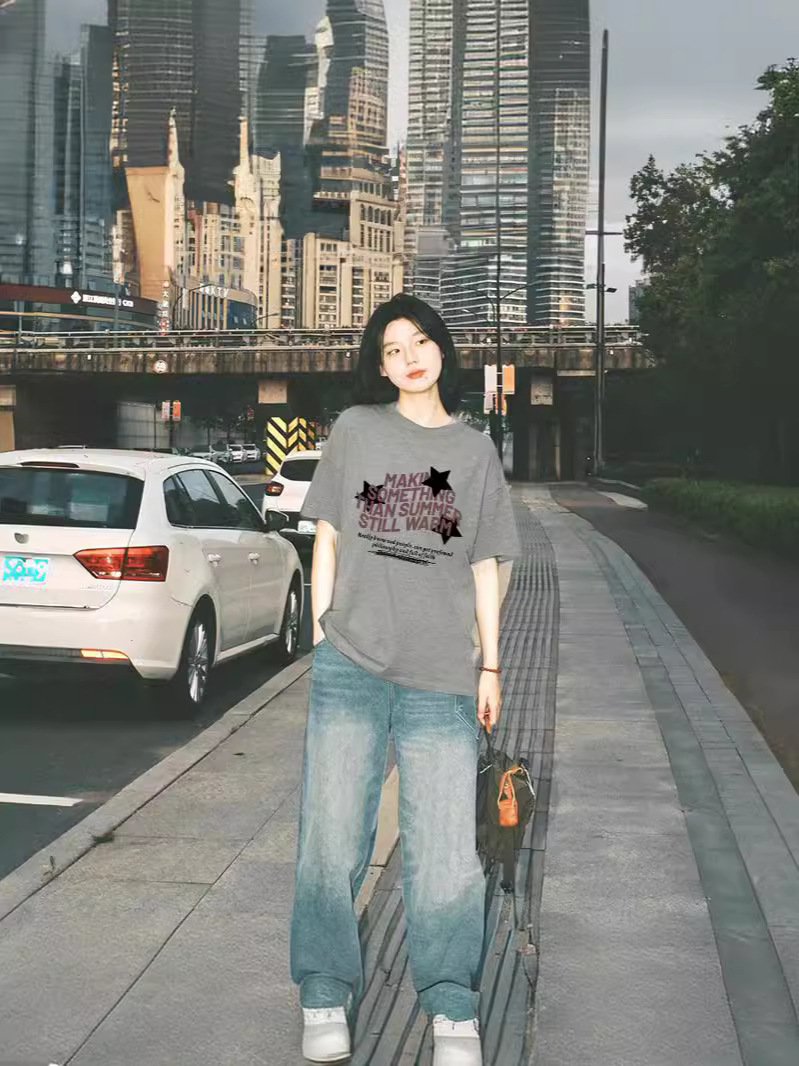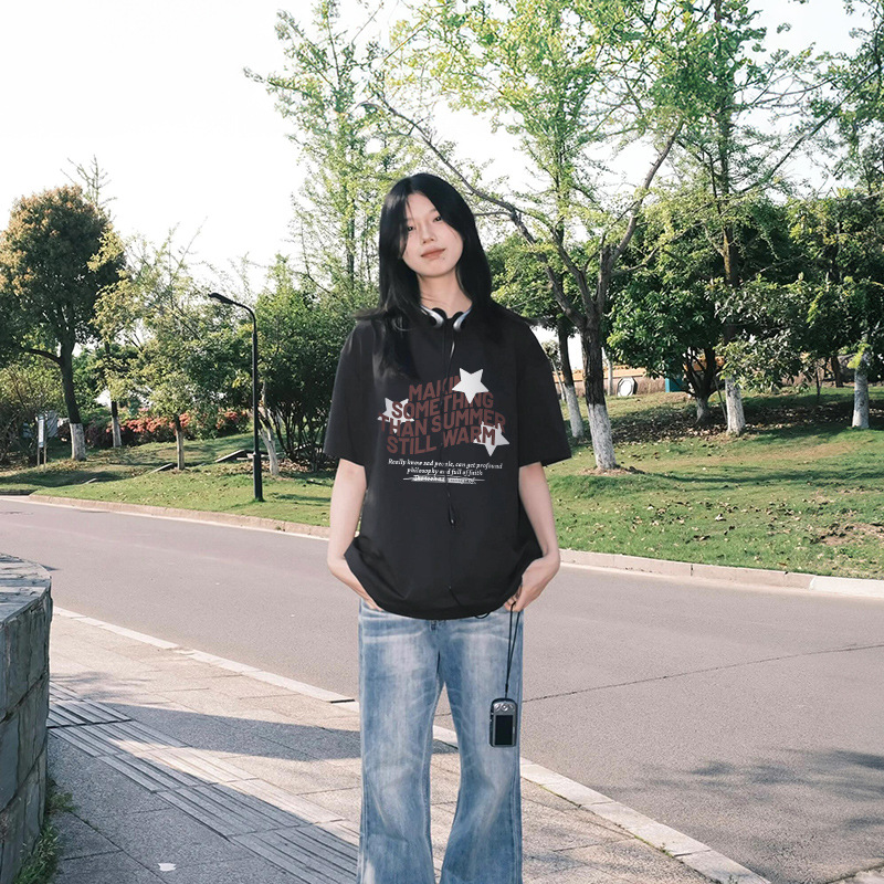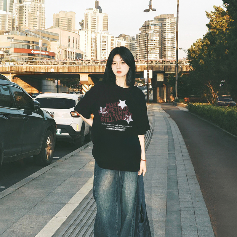Главная страница > Американская сплошная футболка с короткими рукавами Лето 2024 новая свободная хлопчатобумажная полурукава большой размер минус топ