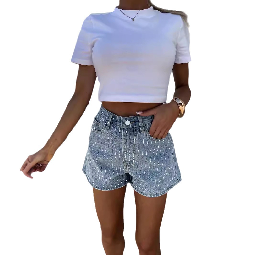 Европейские и американские джинсовые шорты женские 2024 новые тонкие персонализированные модные штаны