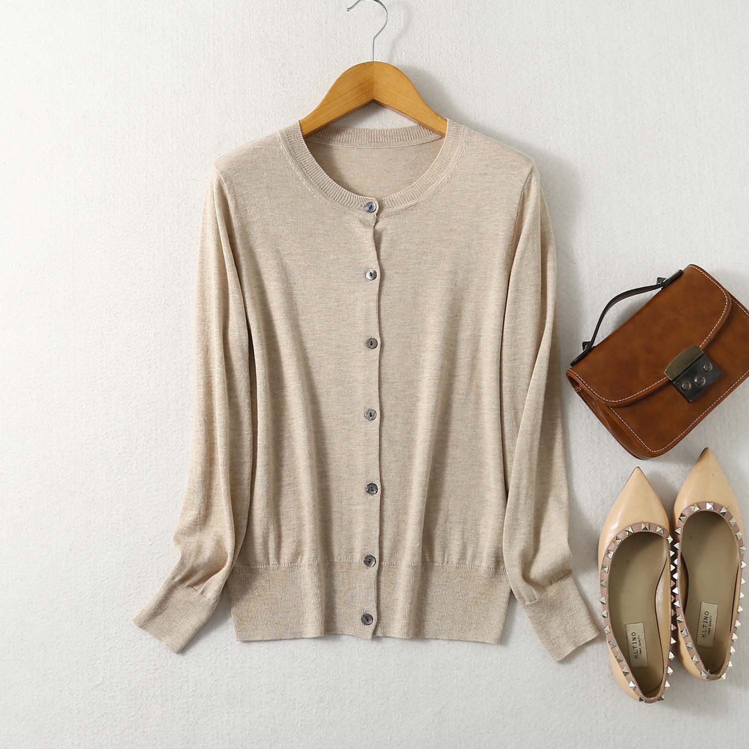 Главная страница > Новый весенне-осенний кардиган с круглым вырезом, шелк, кашемир, хлопок, смесь с длинным рукавом, Женский обычный свитер, Свободный Топ