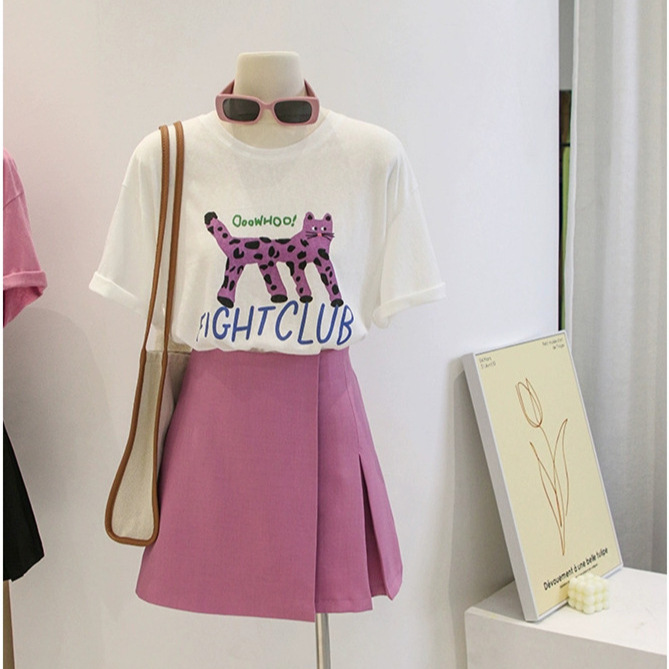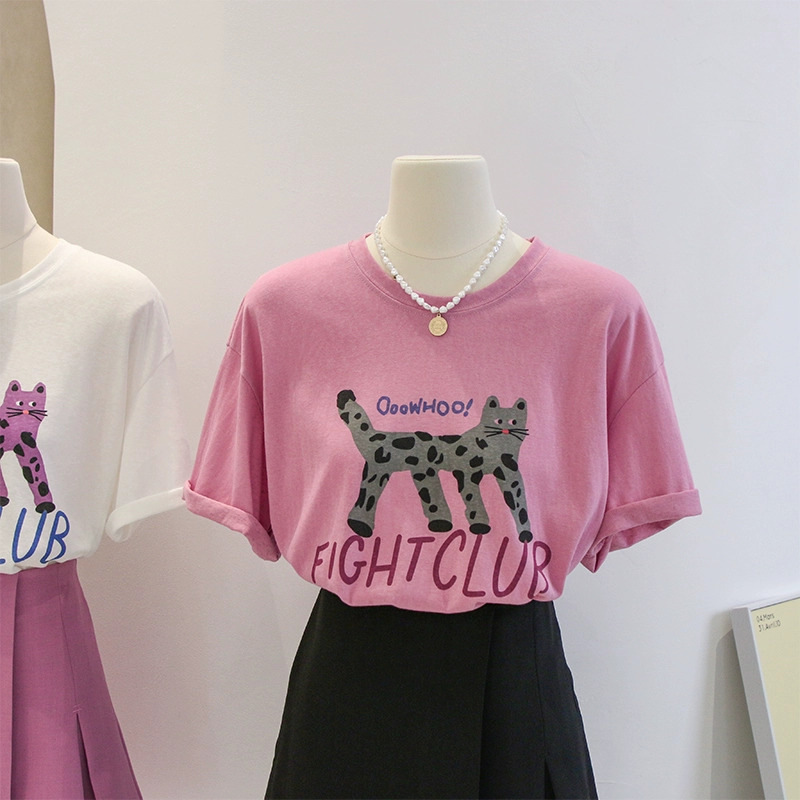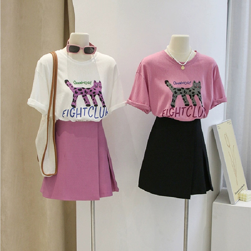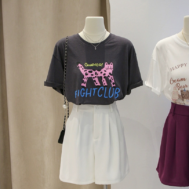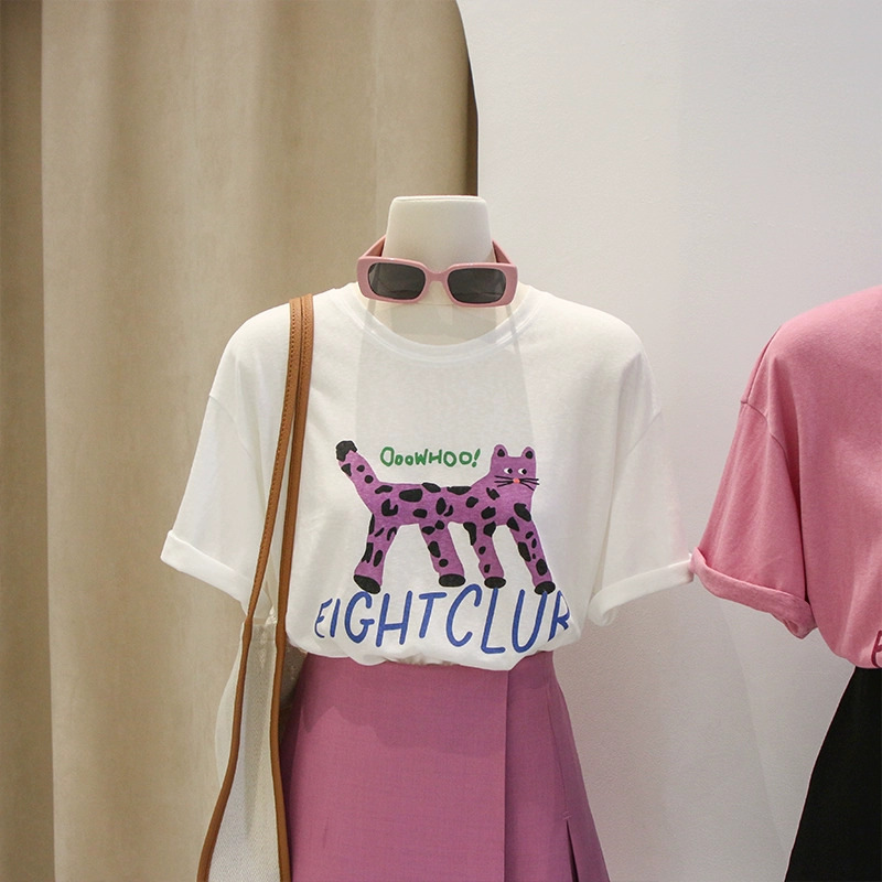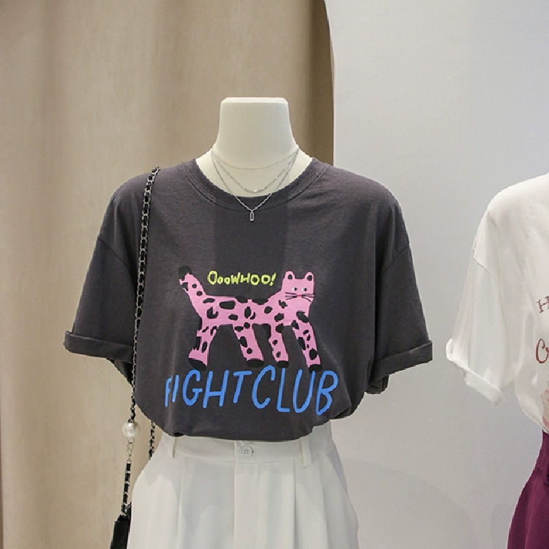 Главная страница > 2024 новая летняя женская футболка с коротким рукавом женская корейская версия свободного полурукава кювета с круглым вырезом с принтом одежды нижняя рубашка