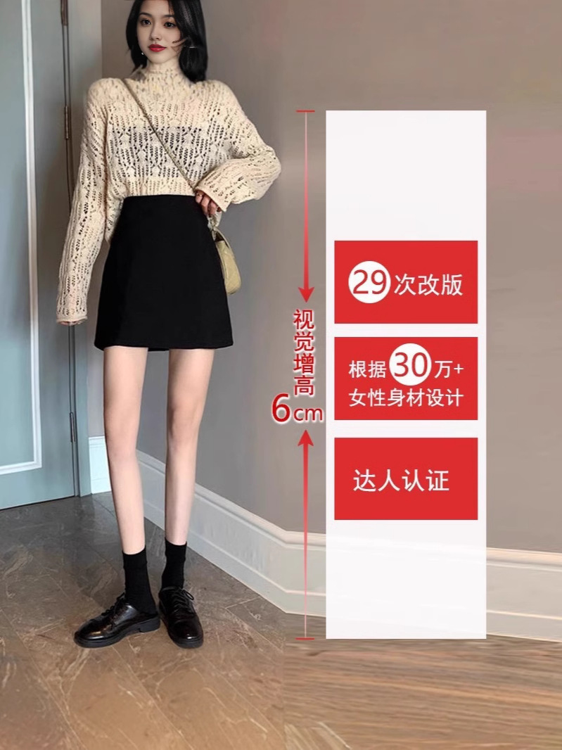 Главная страница > Черная шерстяная короткая юбка юбка в виде буквы А женская осень-зима толстый мм большой размер грушевидной формы