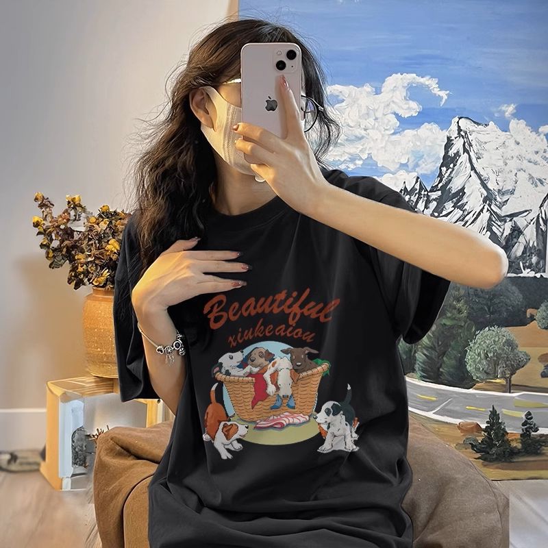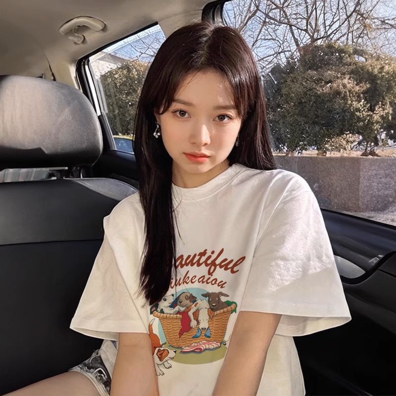 Главная страница > 100% хлопок, американская ретро футболка, женская короткая рукав, новая белая свободная футболка, полурукав, нишевый дизайн, топ