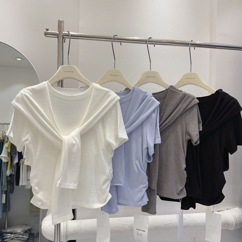 [Магазин горячих продаж] Супер ощущение дизайна Mod Mod чувство ниши платок поддельные две футболки с короткими рукавами