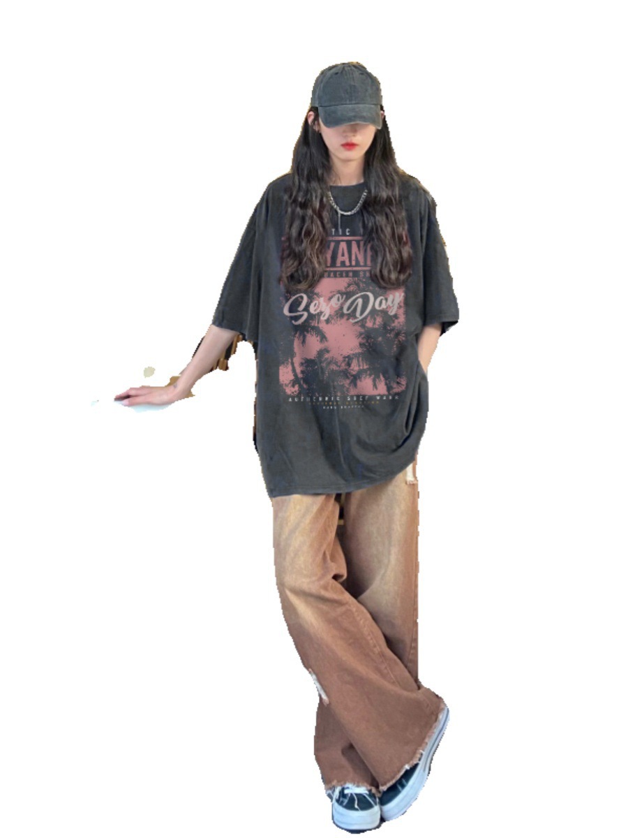 Главная страница > Плюс-сайз американский ретро серый комплект для женщин больших размеров, летний топ с коротким рукавом, модный европейский и американский брендовый дизайн, свободный крой