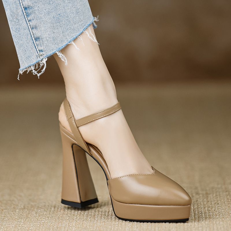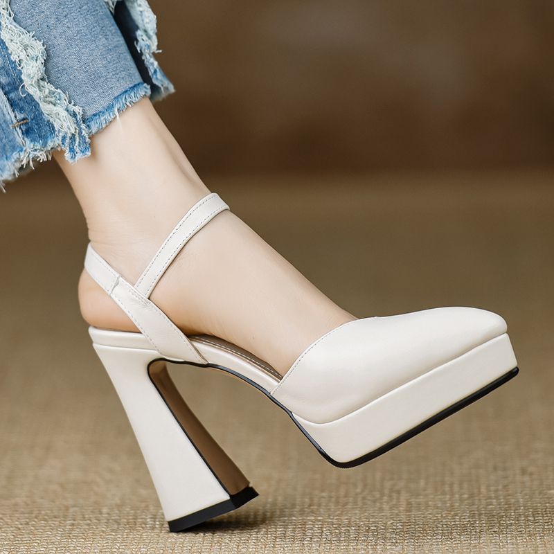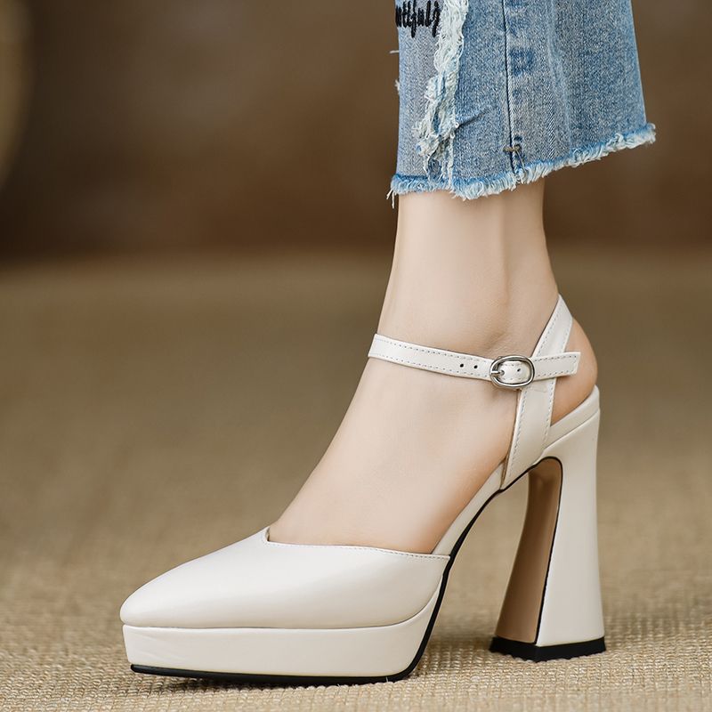 Главная страница > Женские туфли ручной работы, новый стиль 2025, водонепроницаемые платформенные босоножки на высоком каблуке, толстый каблук, заостренный носок, пряжка, бежевые, элегантные туфли на высоком каблуке