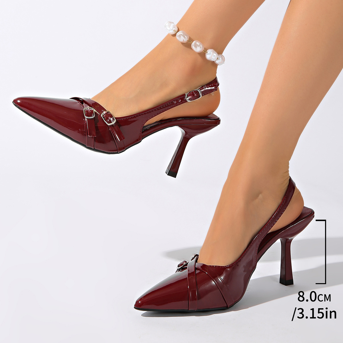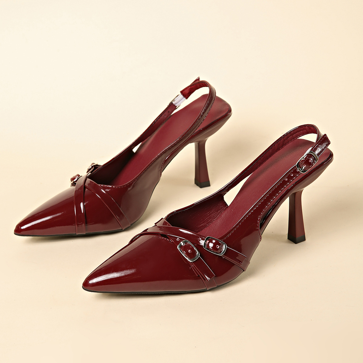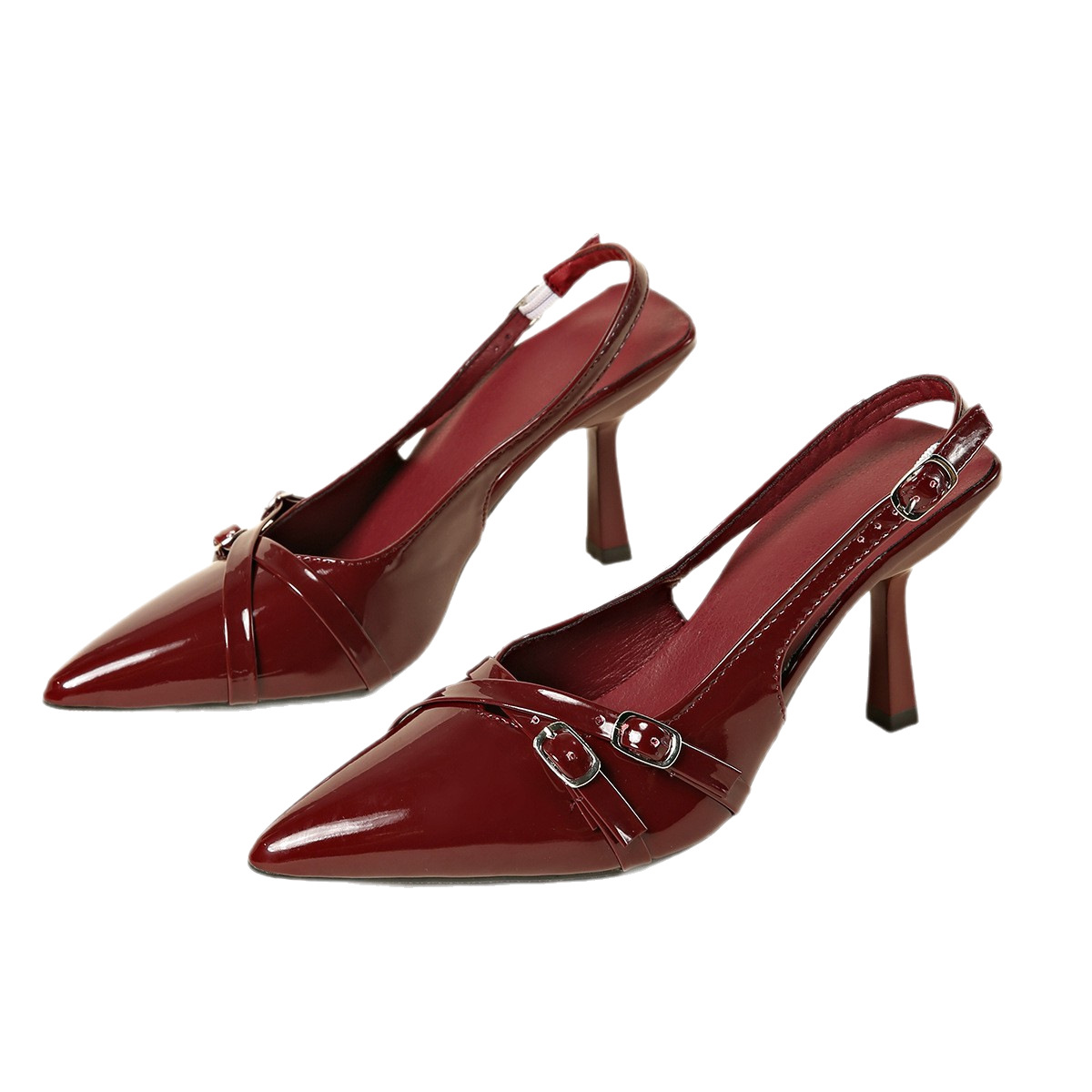 Главная страница > Женские туфли на высоком каблуке с металлической пряжкой, бордовые сексуальные туфли на каблуке-котенке, модные вечерние сандалии, трансграничные