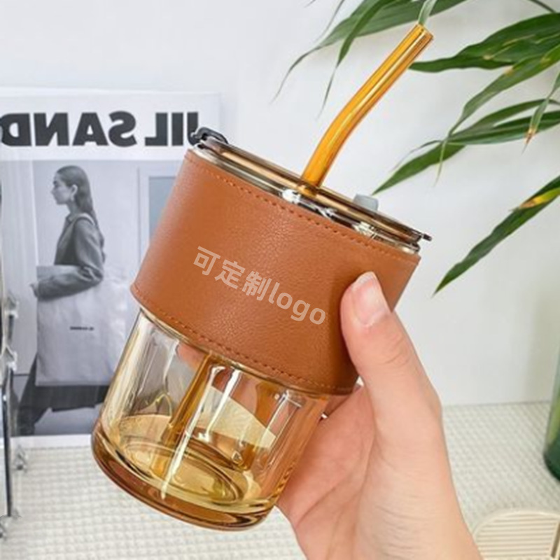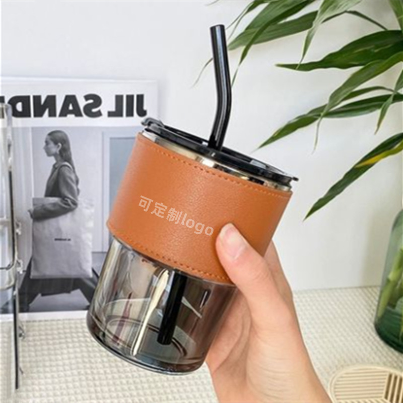 Прозрачный (соломинка + крышка + кожаный чехол)