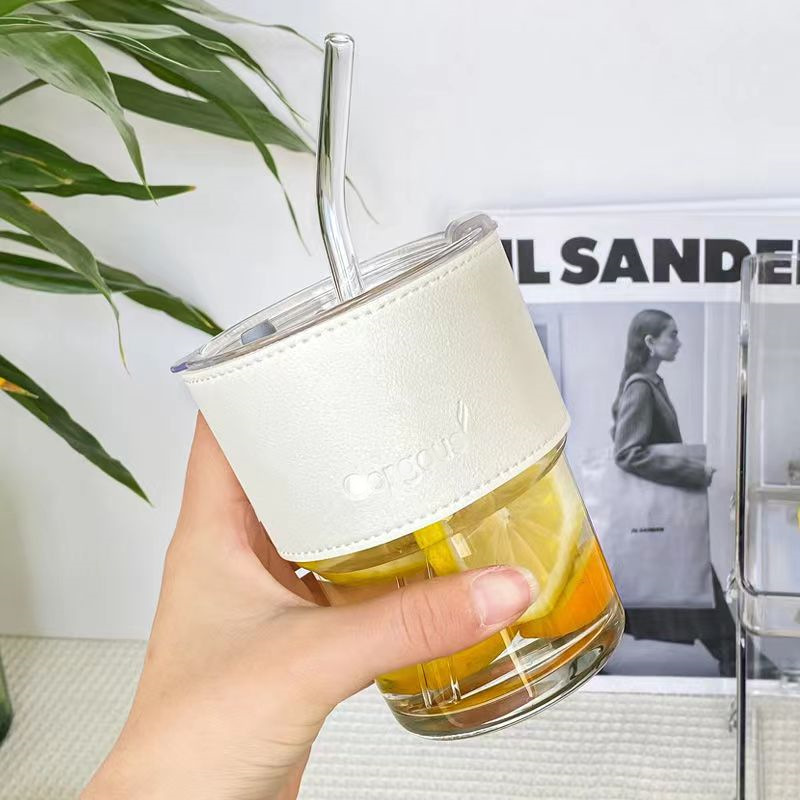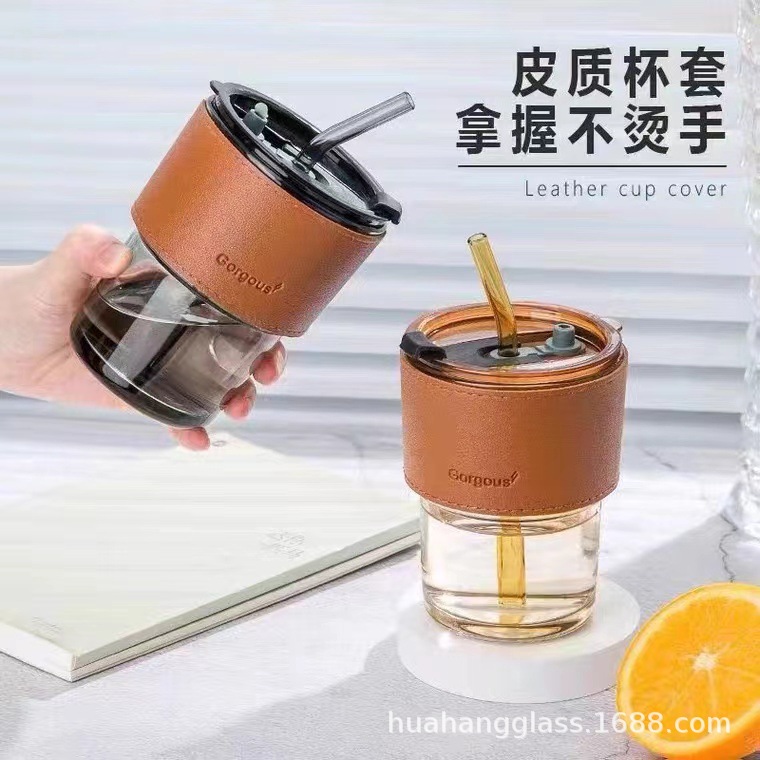 Высококачественная термостойкая стеклянная соломенная чашка для воды в стиле ins чашка для кофе и чая с молоком с крышкой Женская Чистая красная бамбуковая чашка оптом