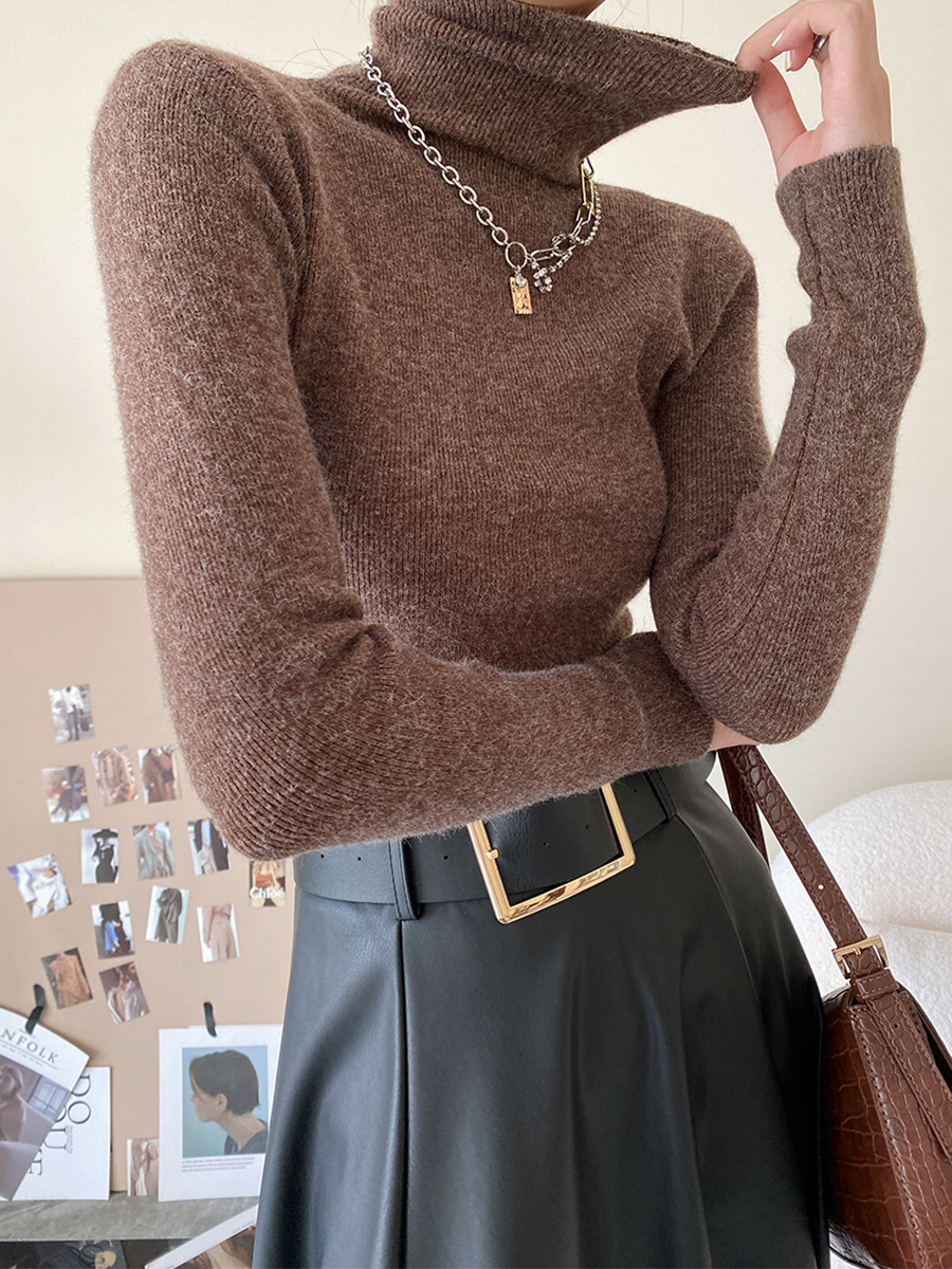 Главная страница > Элегантная простая однотонная водолазка Sinan, трикотаж, новинка осени и зимы 2025, эластичная рубашка с тонким низом SN0647
