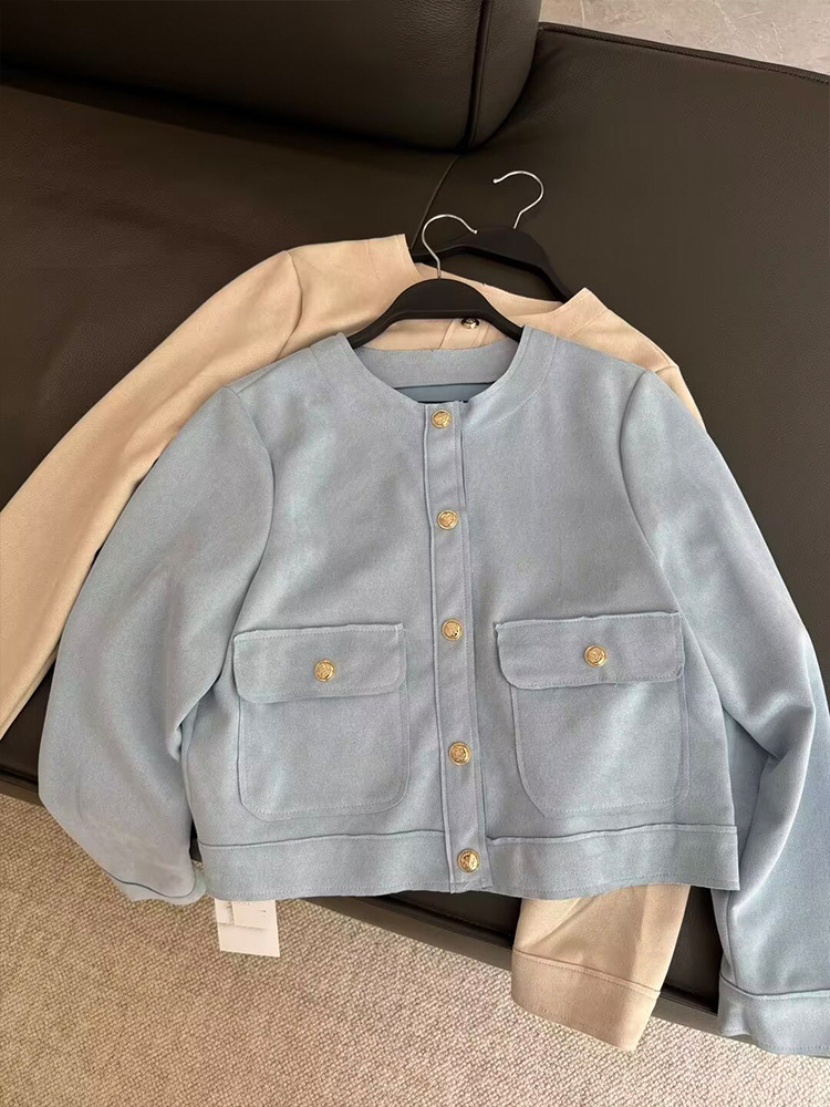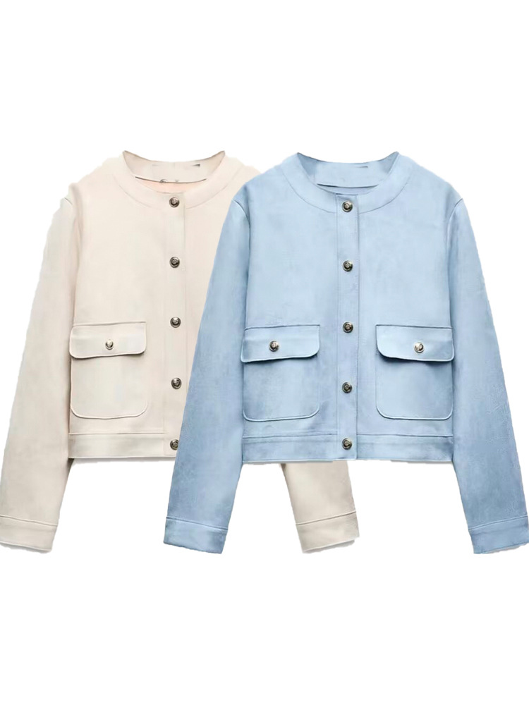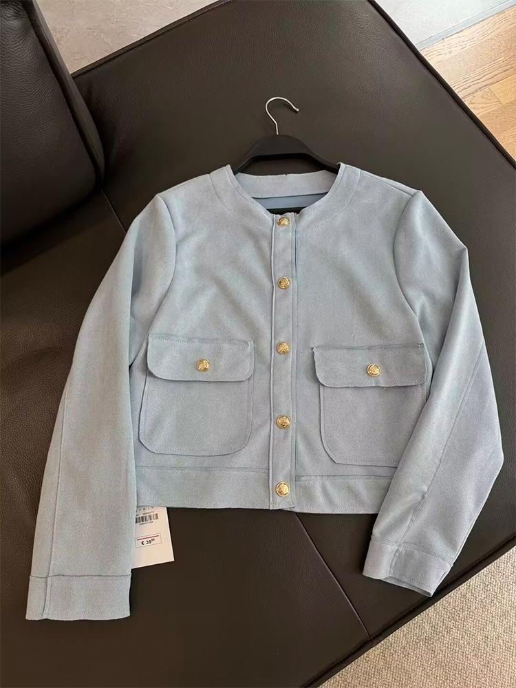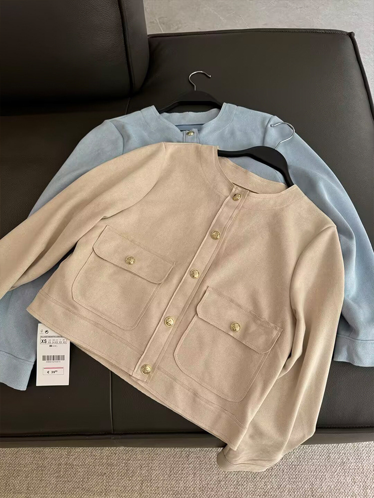 Главная страница > Zatrax осень новый женский замшевый текстура с круглым вырезом с длинными рукавами рыхлый карманный короткий пиджак
