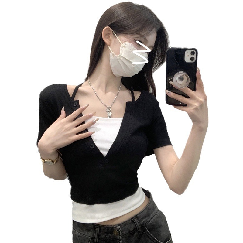 Горячая девушка с шеей поддельные две футболки с короткими рукавами