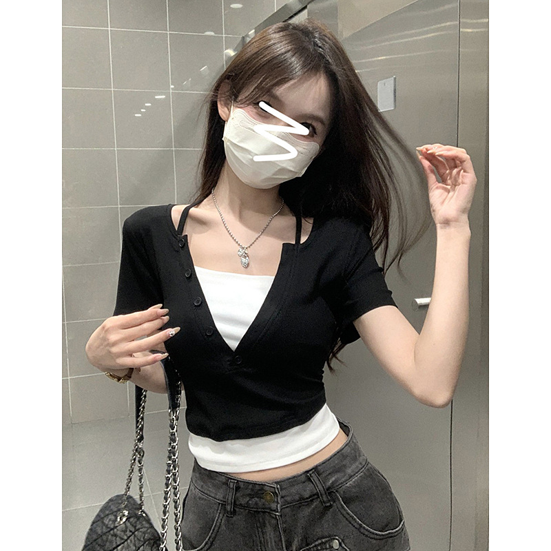Главная страница > Горячая девушка с шеей поддельные две футболки с короткими рукавами