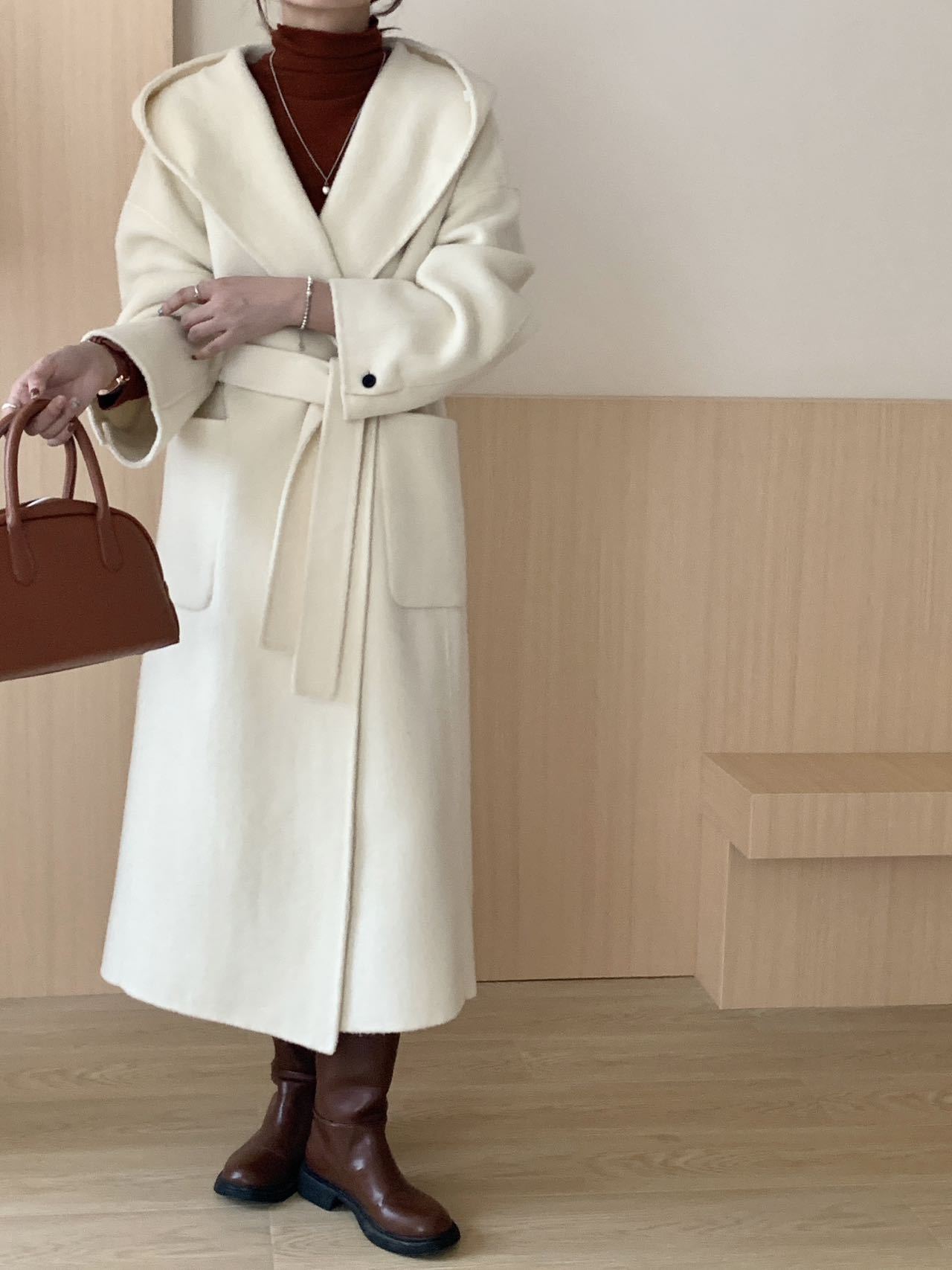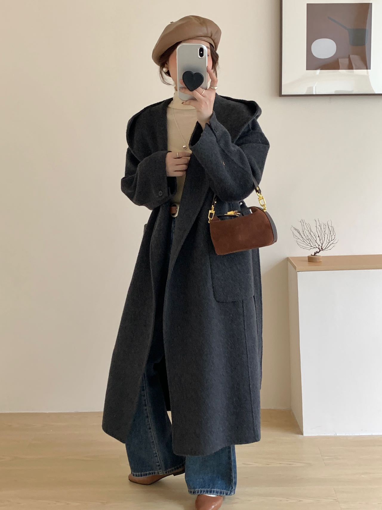 Главная страница > Осенний и зимний новый корейский простой карманный свободный расширенный с капюшоном двухстороннее шерстяное пальто шерстяное пальто женский