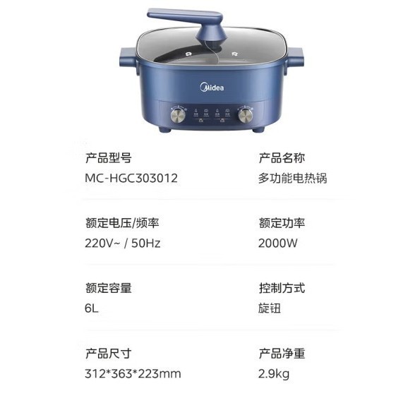 Электрическая кастрюля Midea Yuanyang, бытовая многофункциональная универсальная электрическая кастрюля, электрическая кастрюля для приготовления пищи, кастрюля с антипригарным покрытием HGC 303012