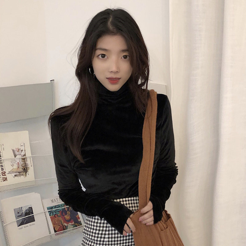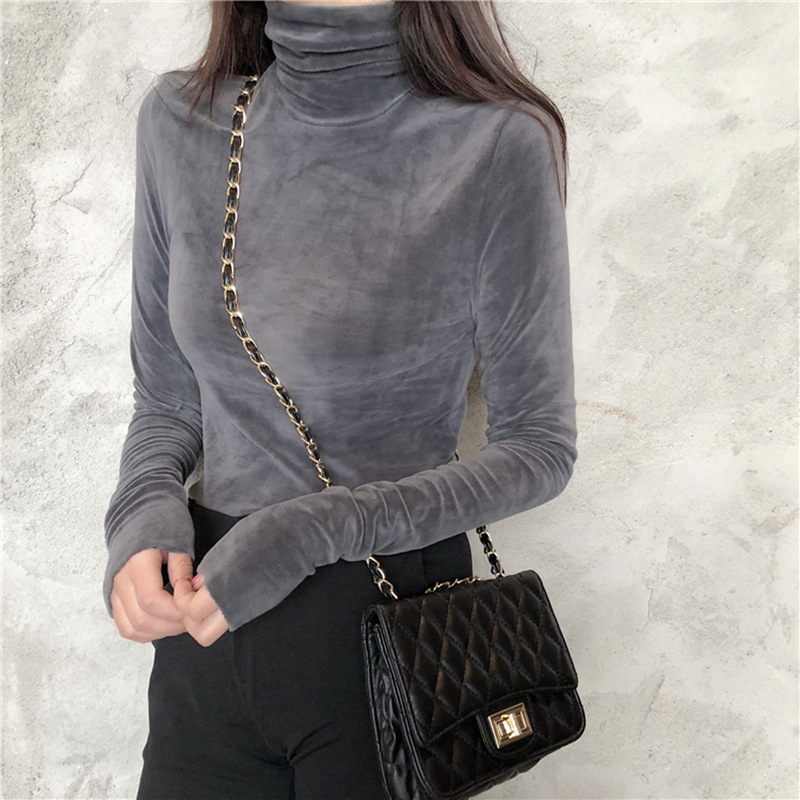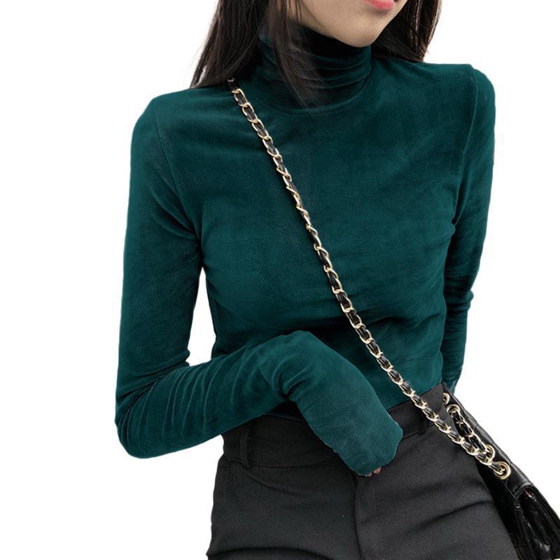 Главная страница > Золотая бархатная нижняя рубашка женская весна осень зима новая бархатная толстая футболка с длинными рукавами теплая внутренняя одежда с высоким воротником
