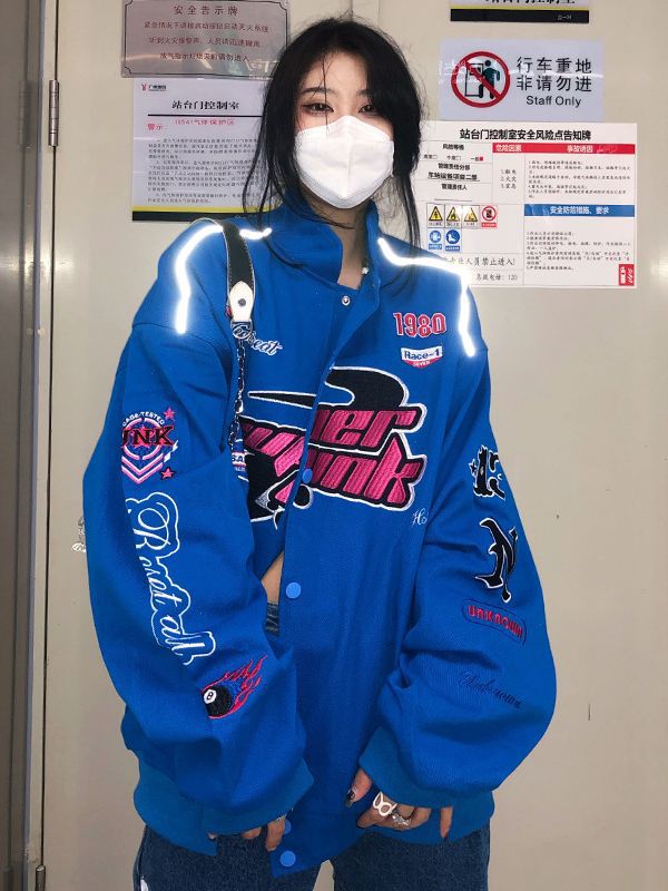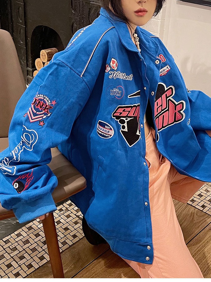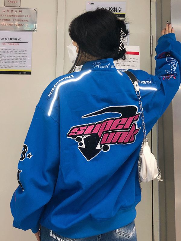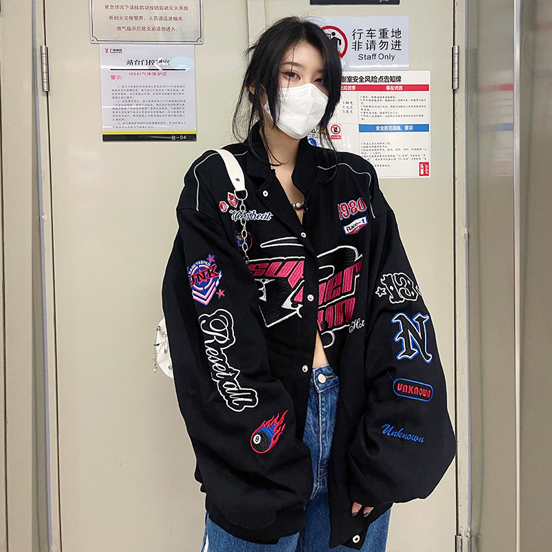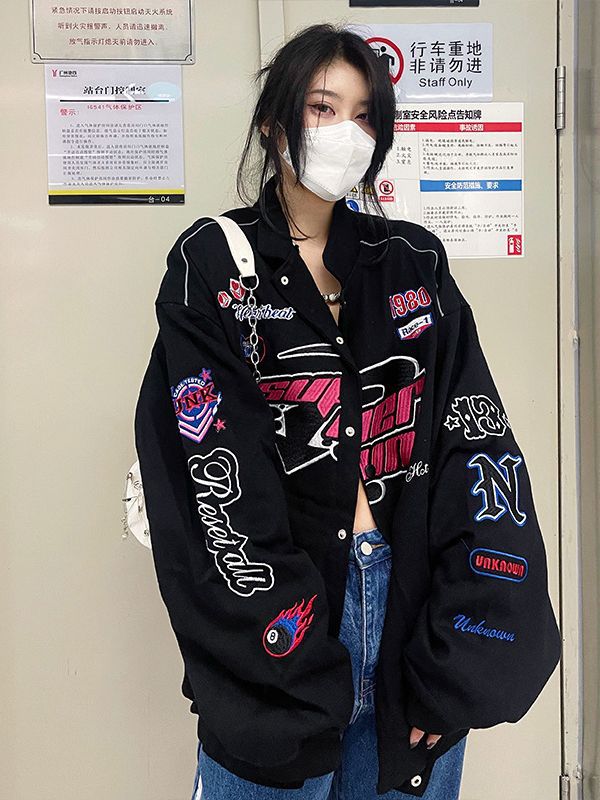 Главная страница > Американский бейсбольный костюм женский весенний и осенний порт ветер мотоцикл летный костюм вышивка куртка свободная трансграничная тонкая куртка прилив ins