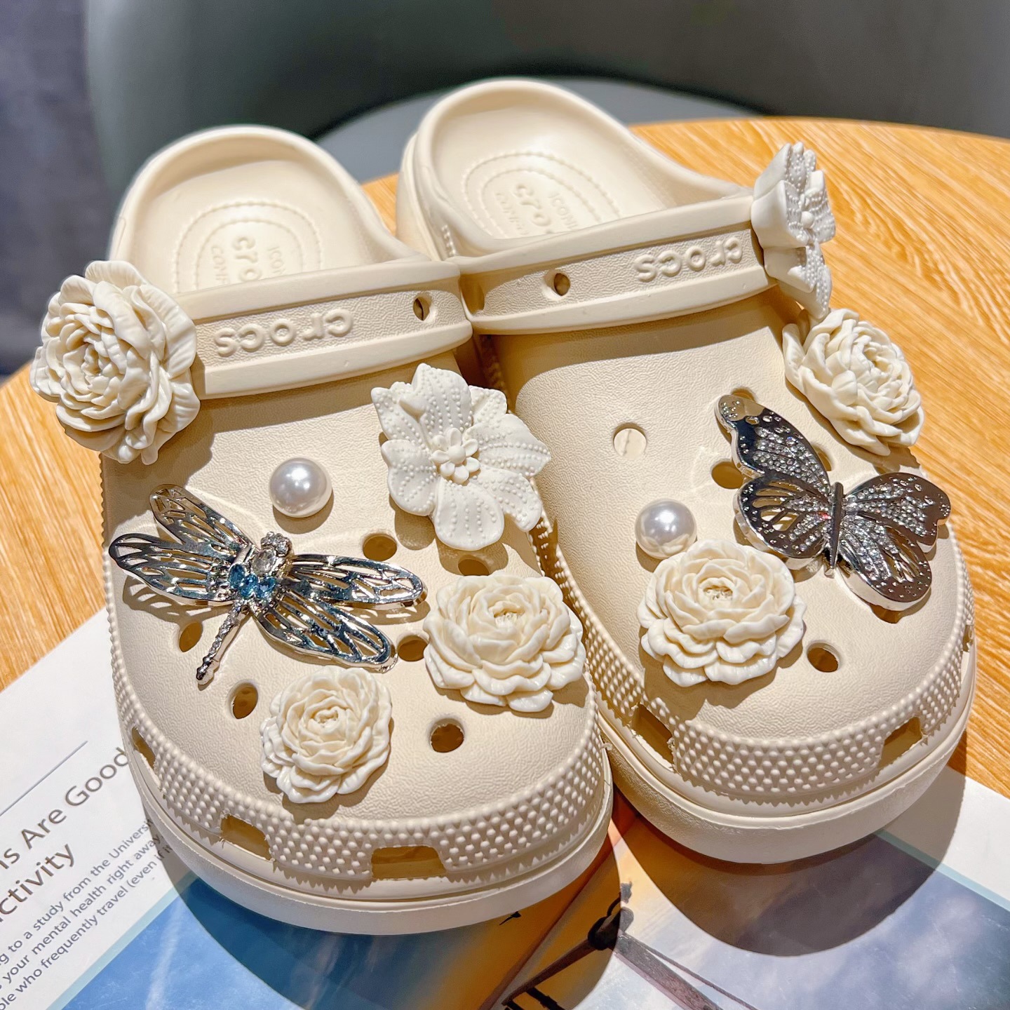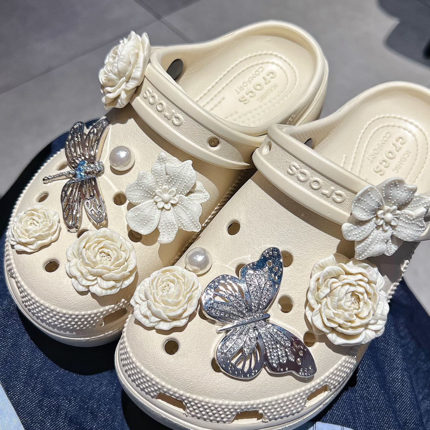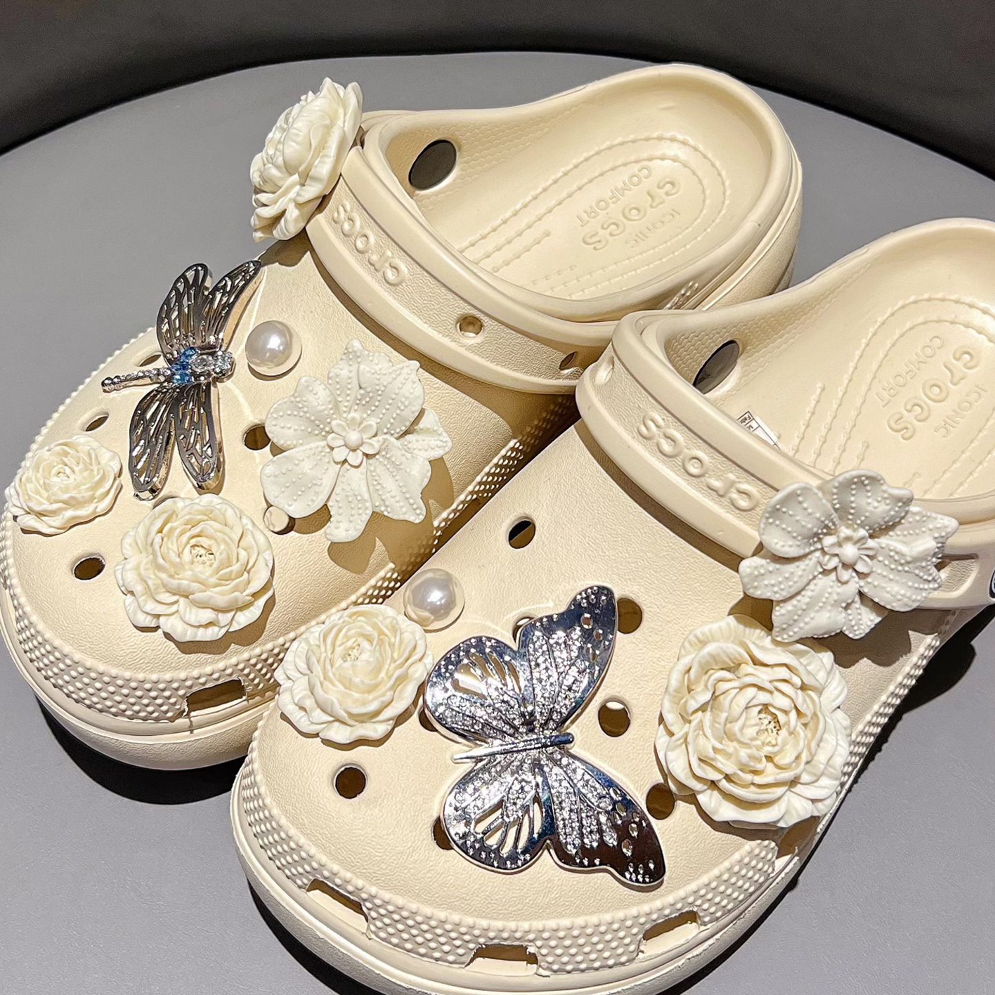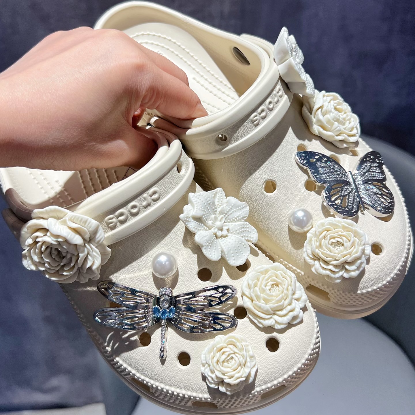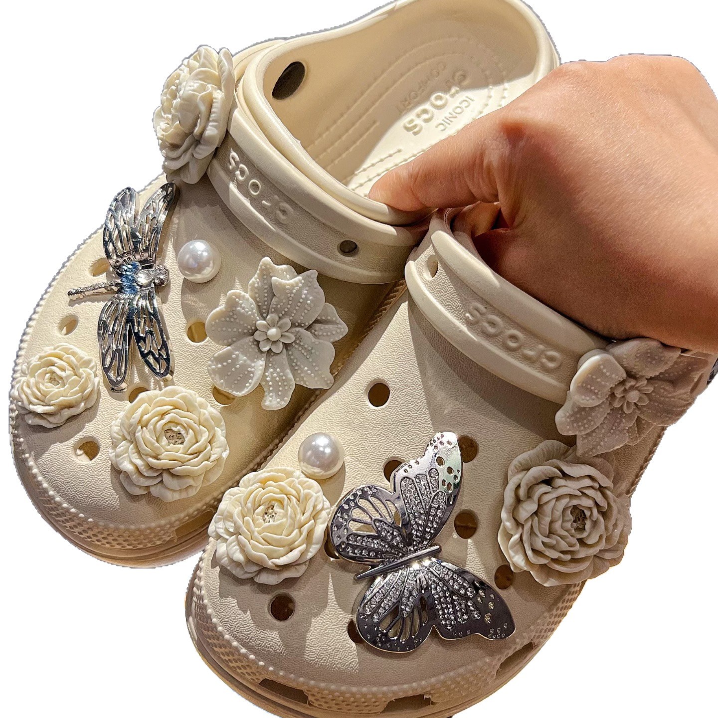 Аксессуары для обуви в стиле «белая роса», пряжки для обуви с цветами, высококачественные пряжки для обуви с бабочками и цветами, оптовая продажа декоративных пряжек для обуви.
