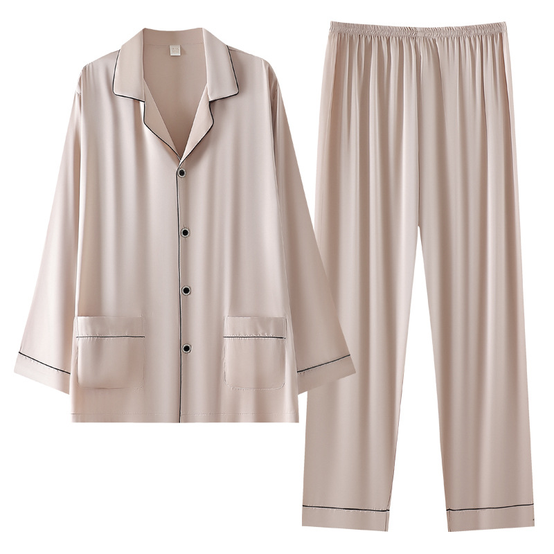 Главная страница > Элитные пижамы из ледяного шелка, весенне-осенний стиль, тонкий шелк для мужчин, летняя мужская домашняя одежда, новинка 2025 года.