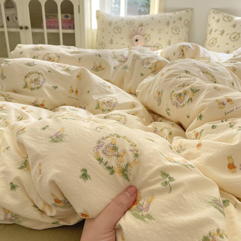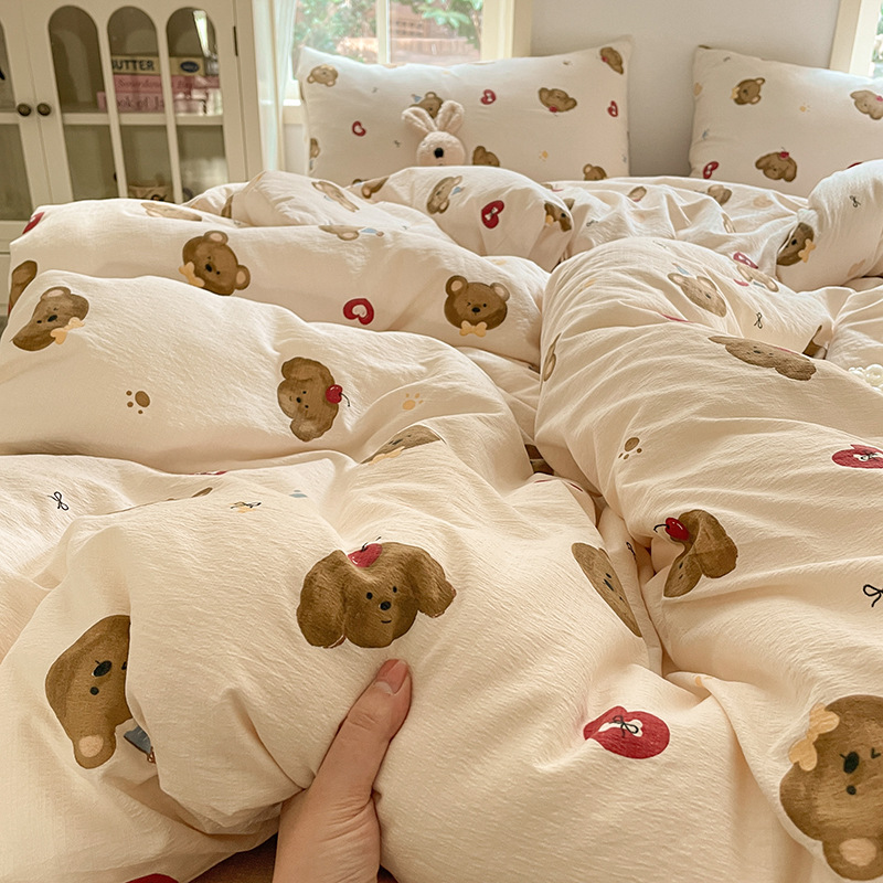 - Комплект из четырех предметов простыни 1,5 м, пододеяльник 150x200 см.