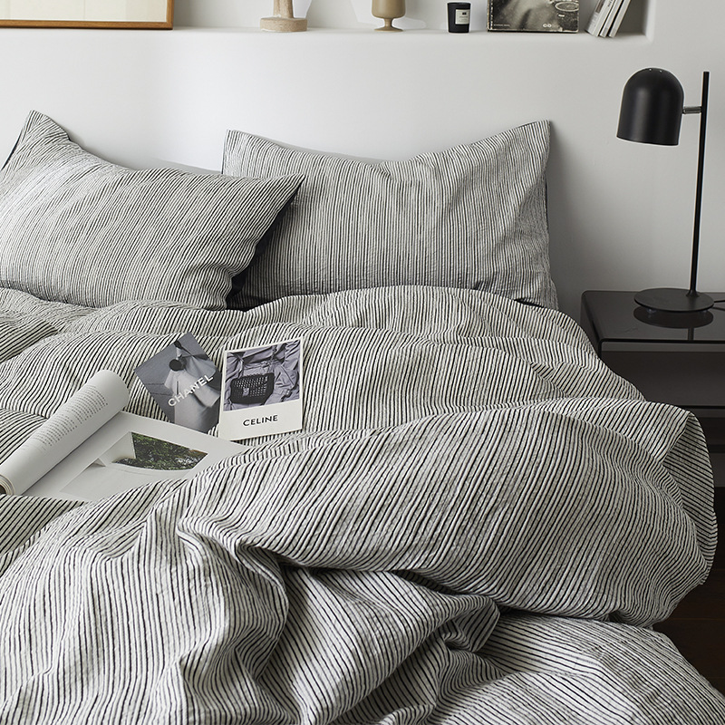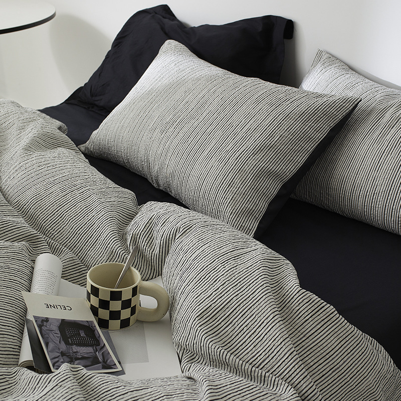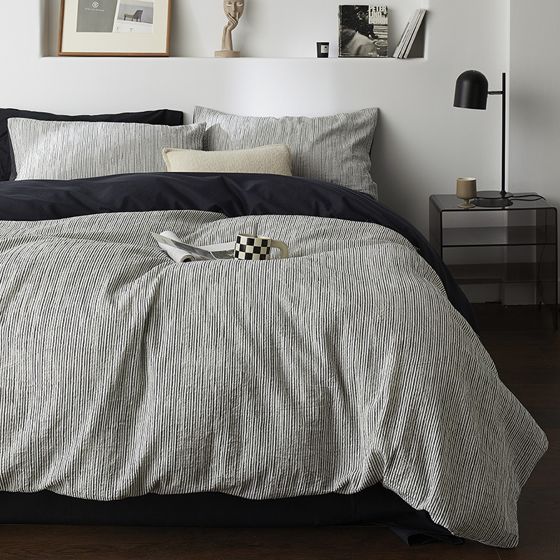 Главная страница > Высокое чувство Скандинавский тихий ветер трехмерный жаккардовый жаккардовый черный полосатый кровать набор из четырех частей хлопчатобумажных простыней