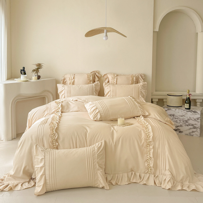 Главная страница > Комплект постельного белья из 4 предметов во французском стиле, всесезонный, белый, 100% стираный хлопок, с кружевом, с матовым покрытием, кремовый стиль, 4 дюйма.
