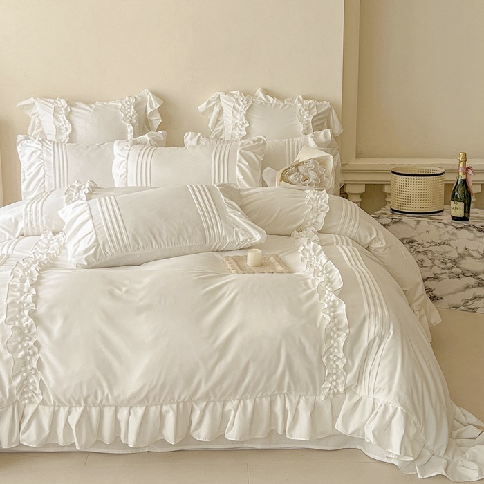 Комплект постельного белья из 4 предметов во французском стиле, всесезонный, белый, 100% стираный хлопок, с кружевом, с матовым покрытием, кремовый стиль, 4 дюйма.