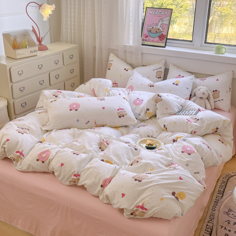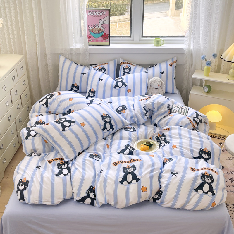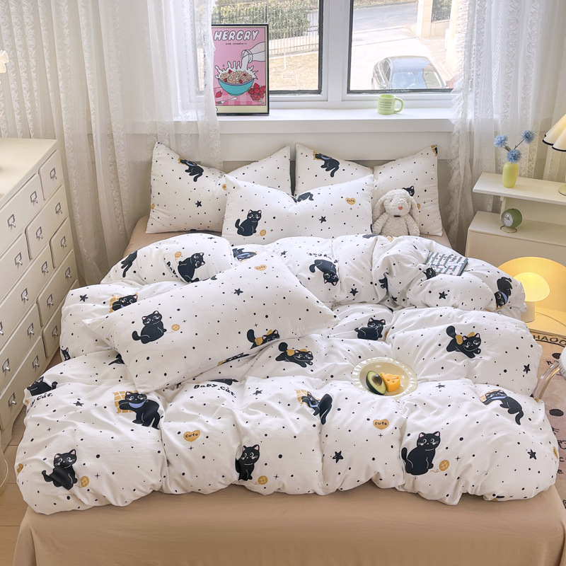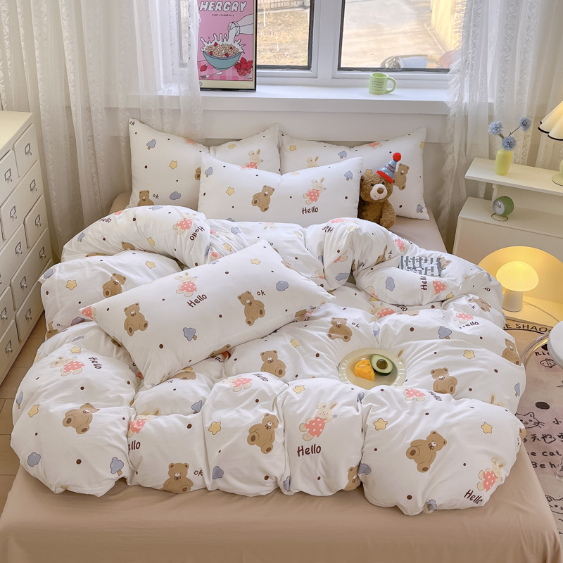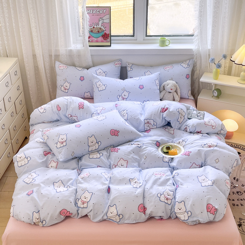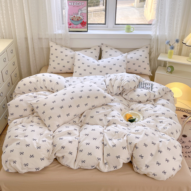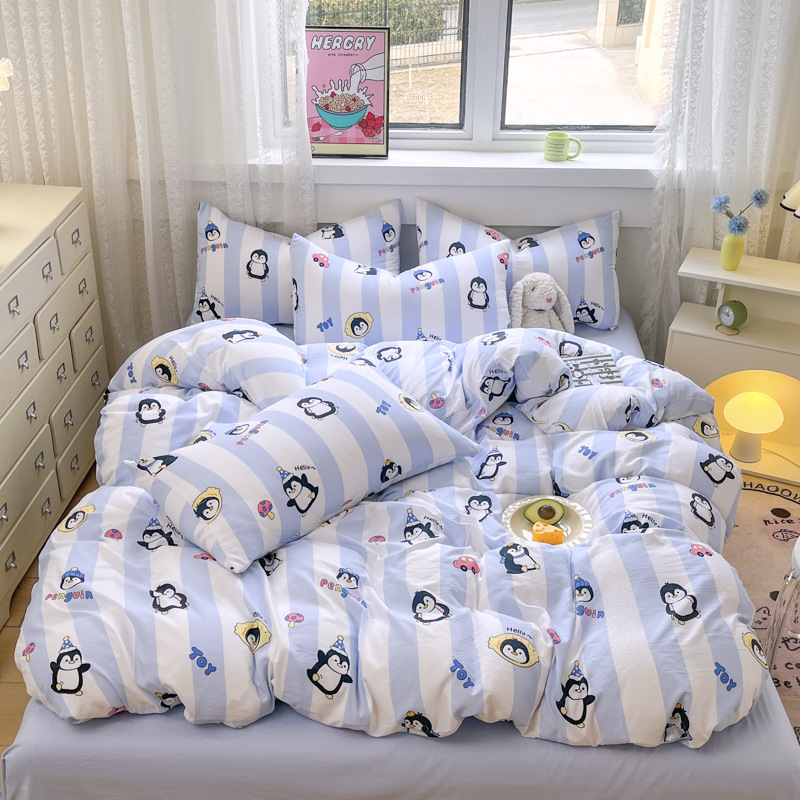 Свежий и простой комплект постельного белья с принтом, четыре предмета: пододеяльник, наволочка, простыня (три предмета), натяжная простыня, мягкий.