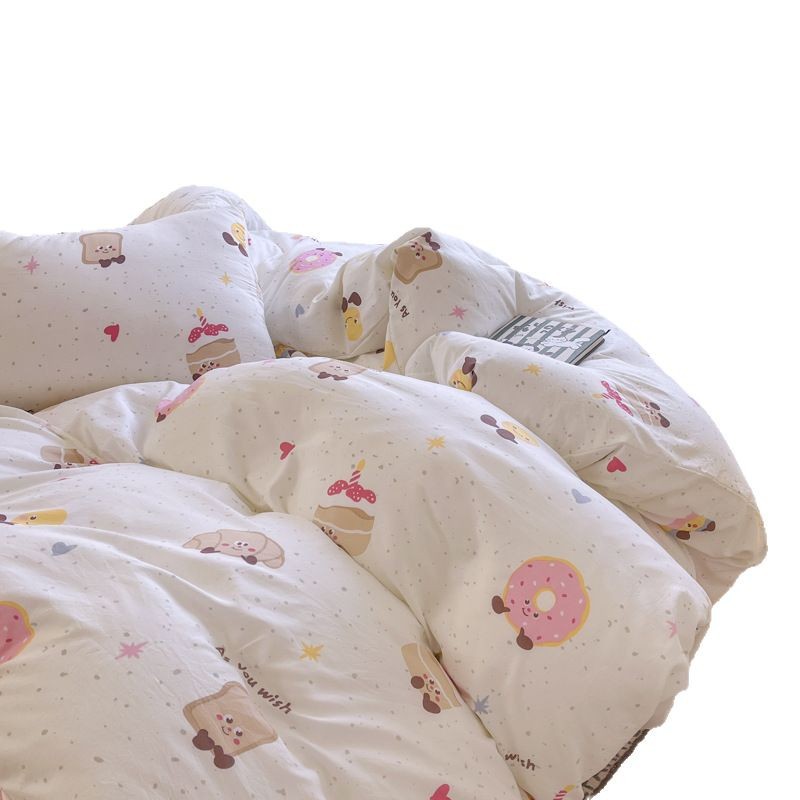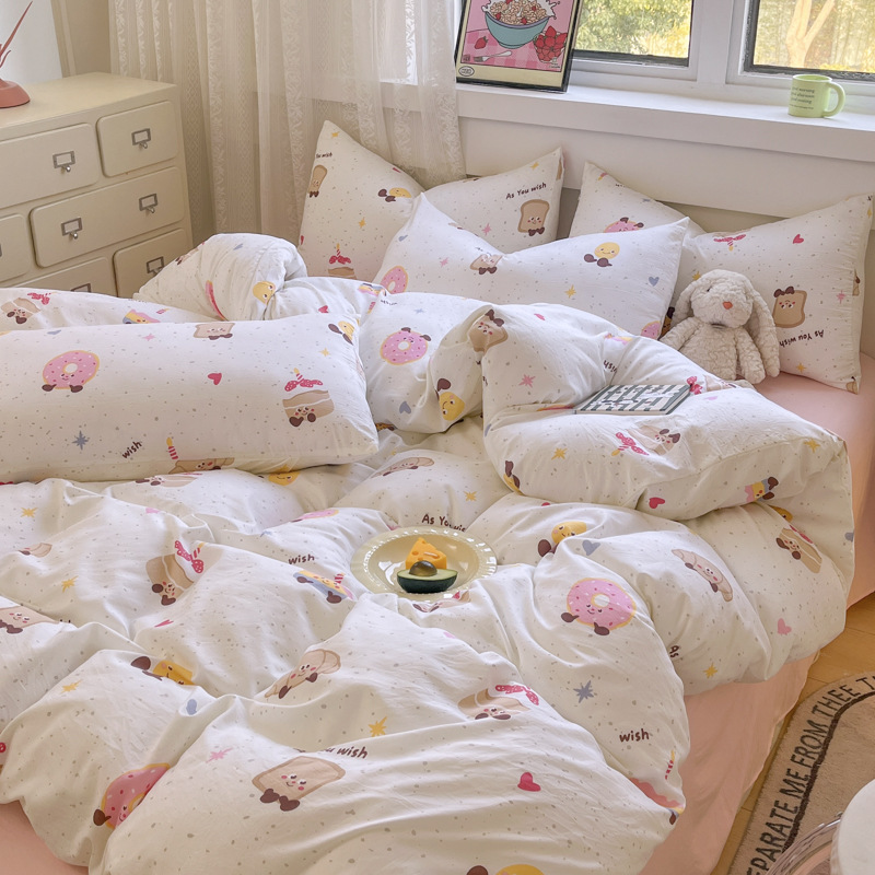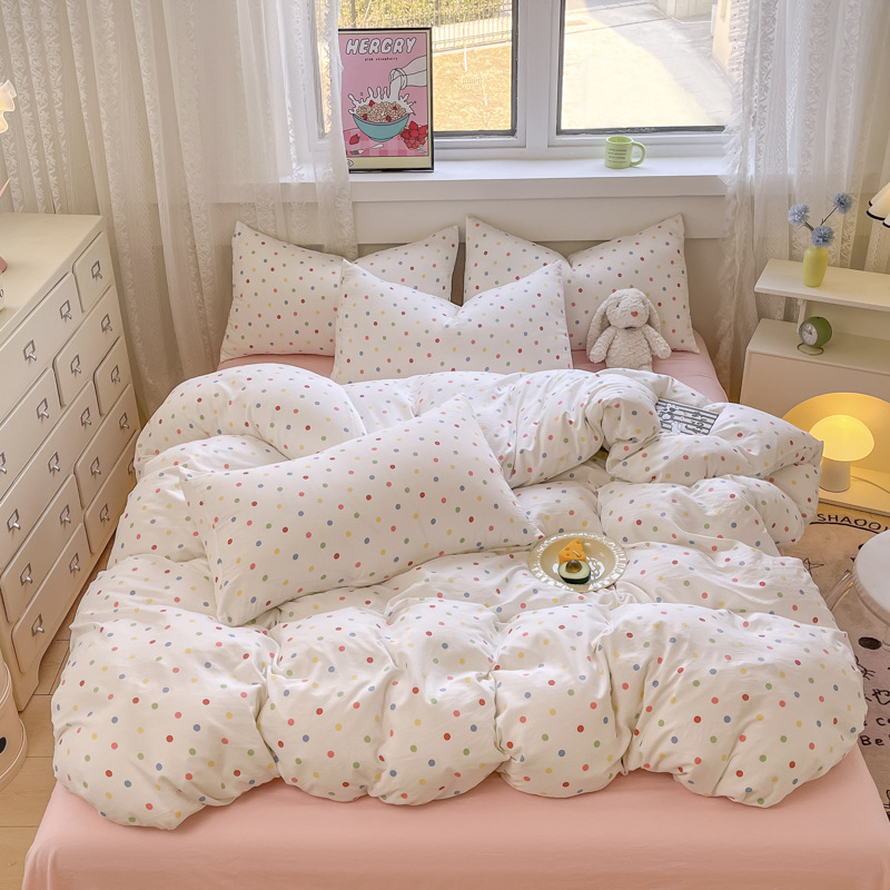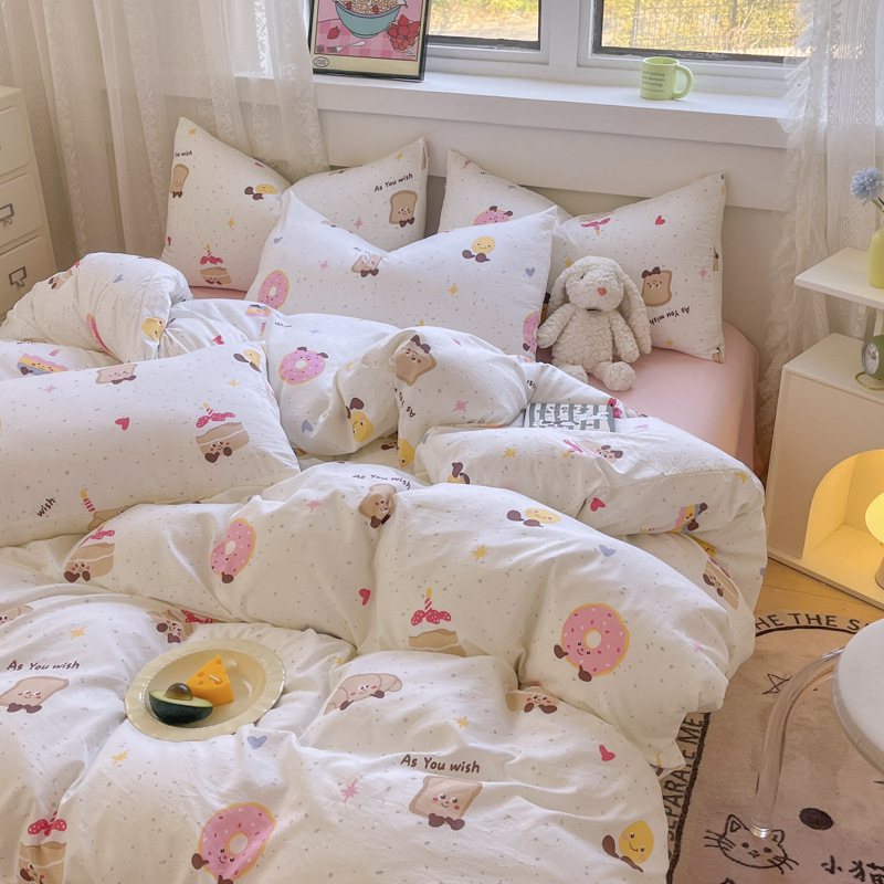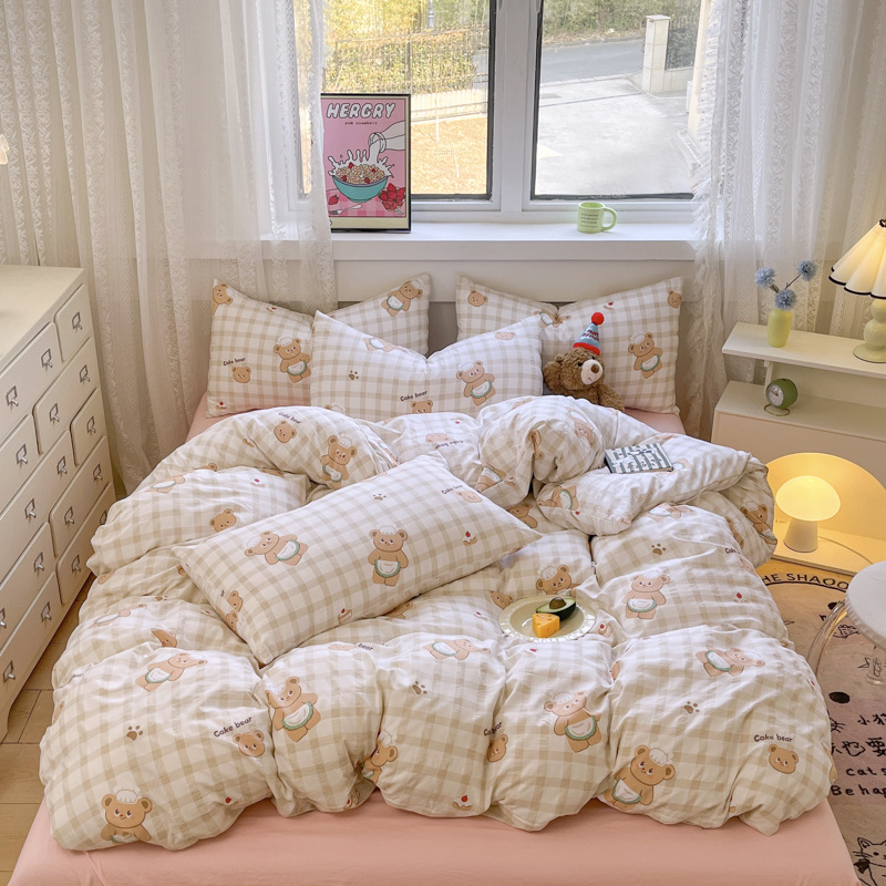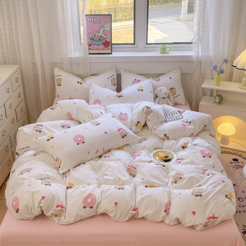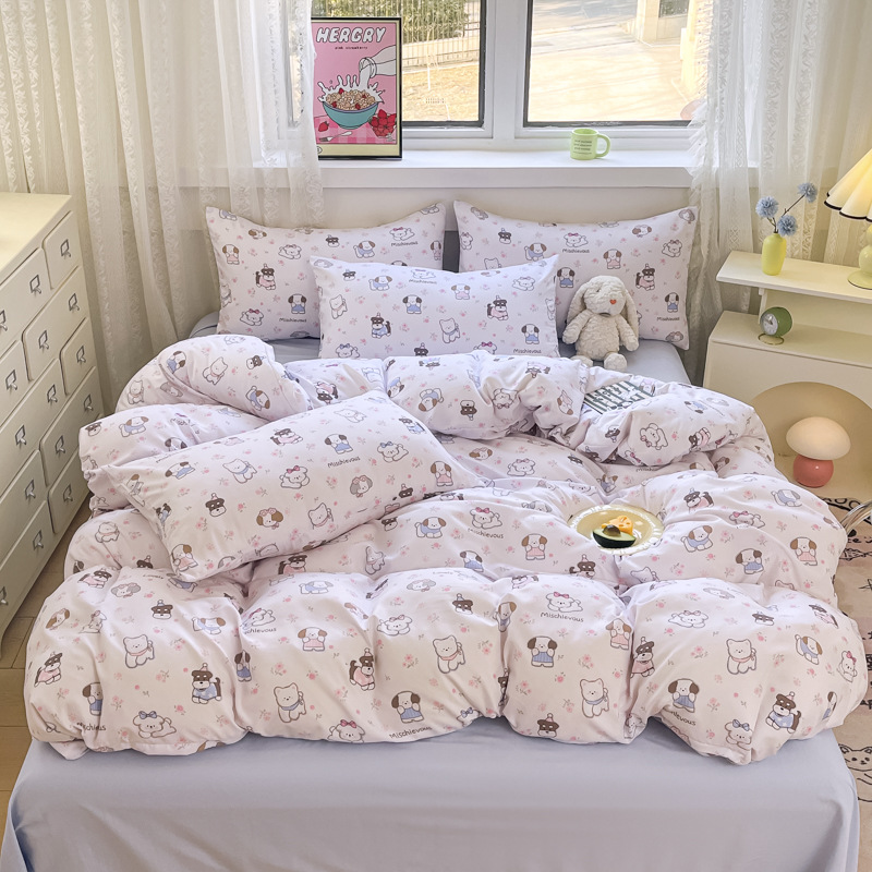 Свежий и простой комплект постельного белья с принтом, четыре предмета: пододеяльник, наволочка, простыня (три предмета), натяжная простыня, мягкий.