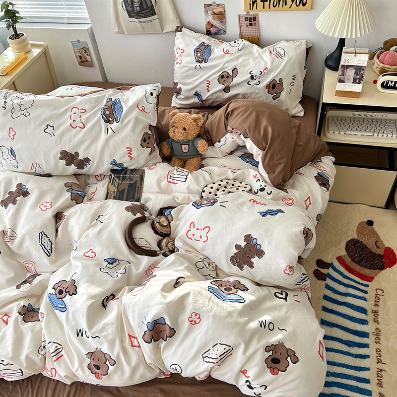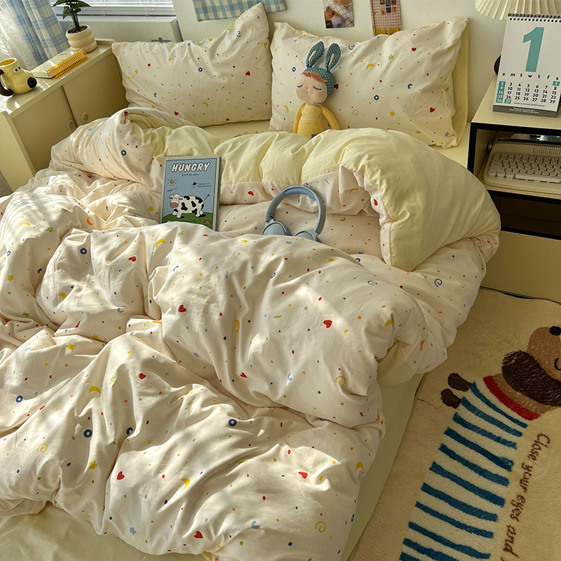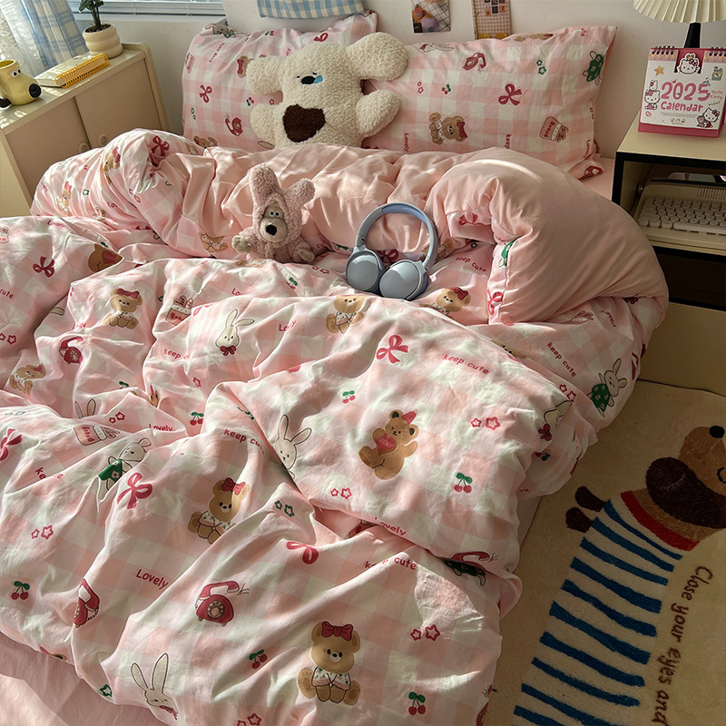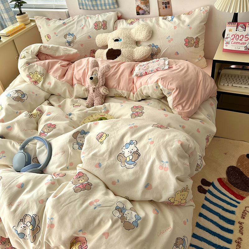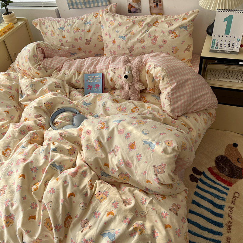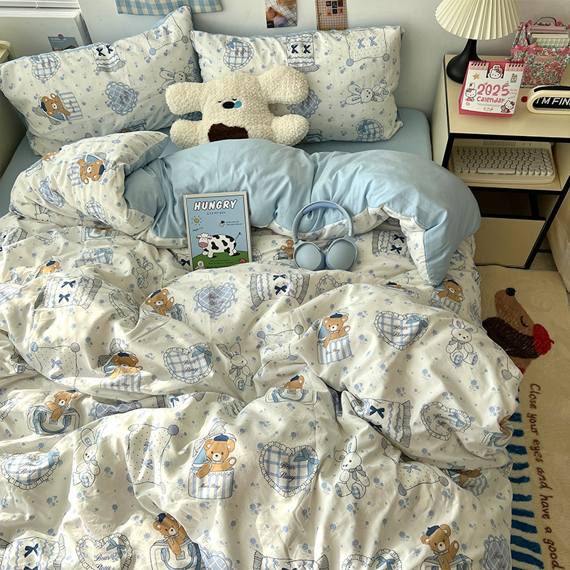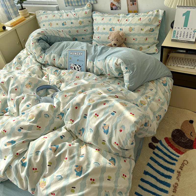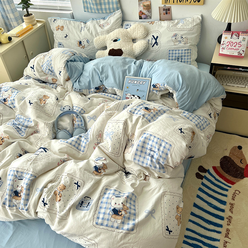 Главная страница > Кровать класса А, комплект из четырех предметов из чистого стираного хлопка, новинка 2025, пододеяльник, простыни, пододеяльник, постельное белье, студенческое общежитие, комплект из трех предметов 4