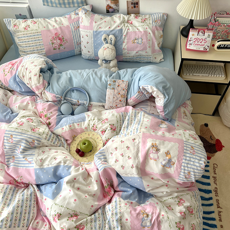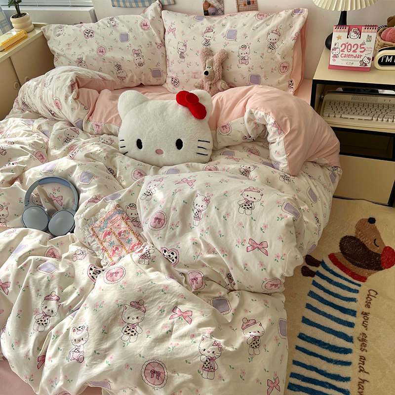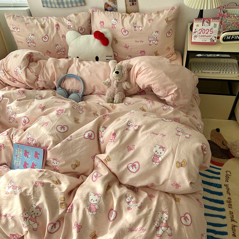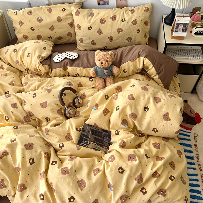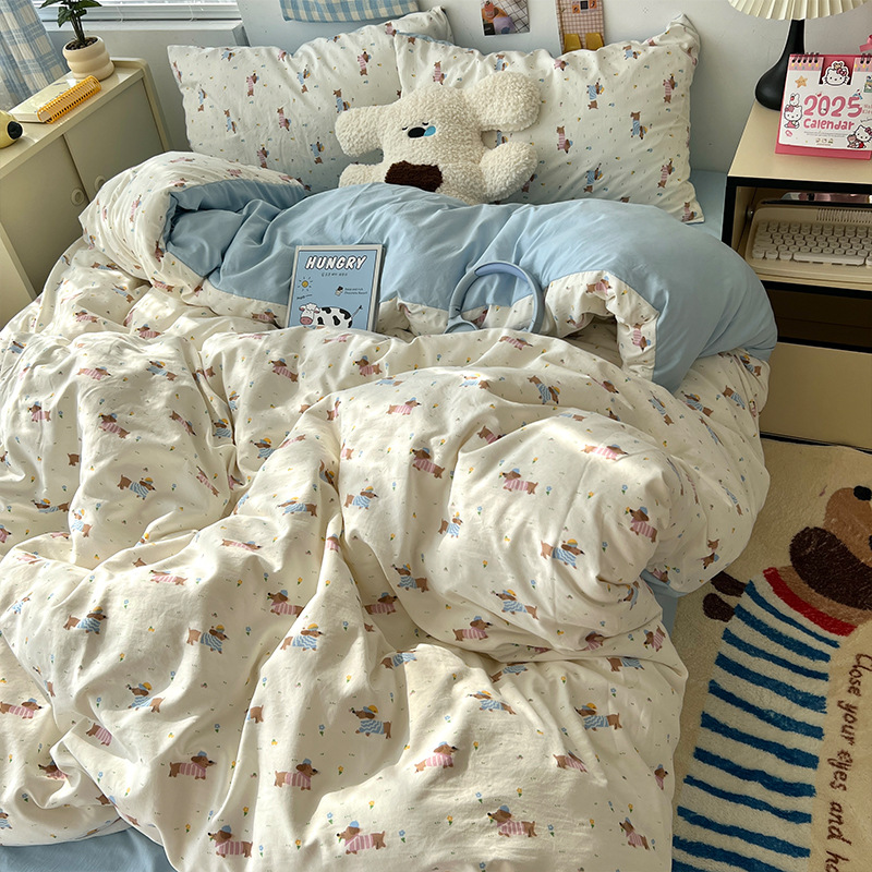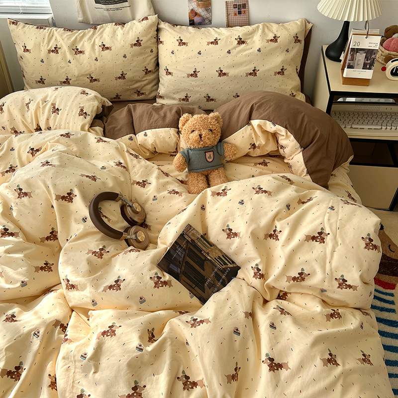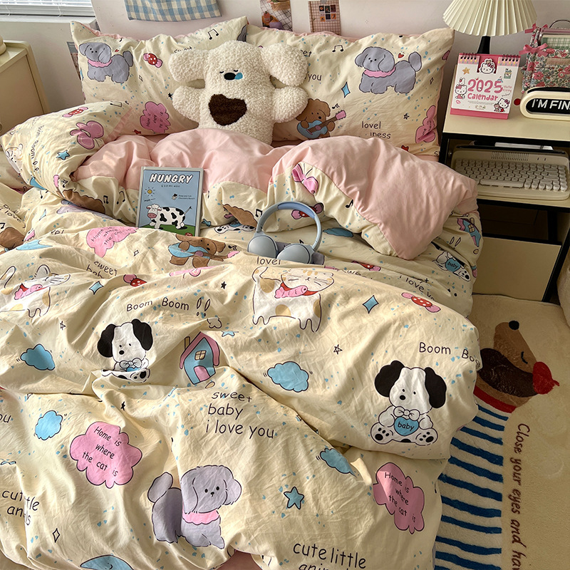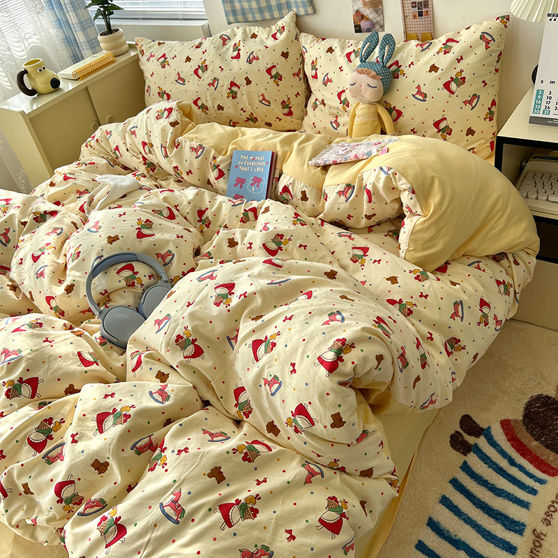 Главная страница > Кровать класса А, комплект из четырех предметов из чистого стираного хлопка, новинка 2025, пододеяльник, простыни, пододеяльник, постельное белье, студенческое общежитие, комплект из трех предметов 4
