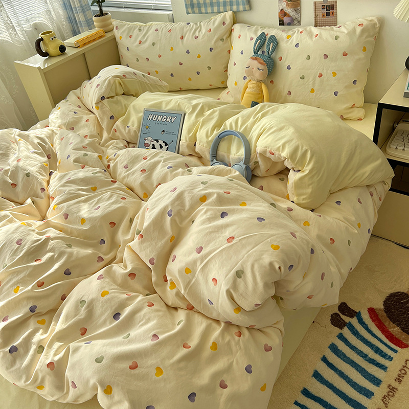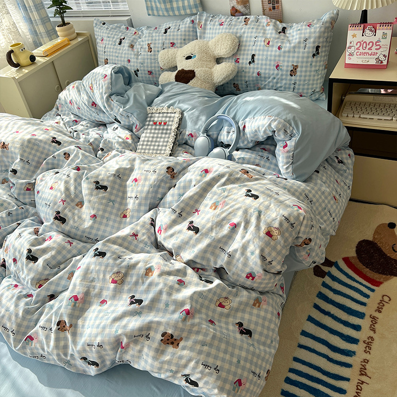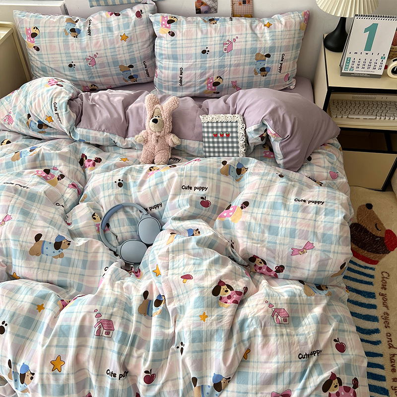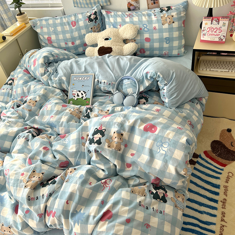 Кровать класса А, комплект из четырех предметов из чистого стираного хлопка, новинка 2025, пододеяльник, простыни, пододеяльник, постельное белье, студенческое общежитие, комплект из трех предметов 4
