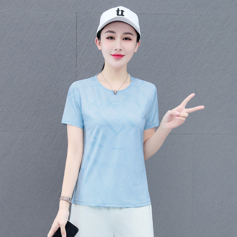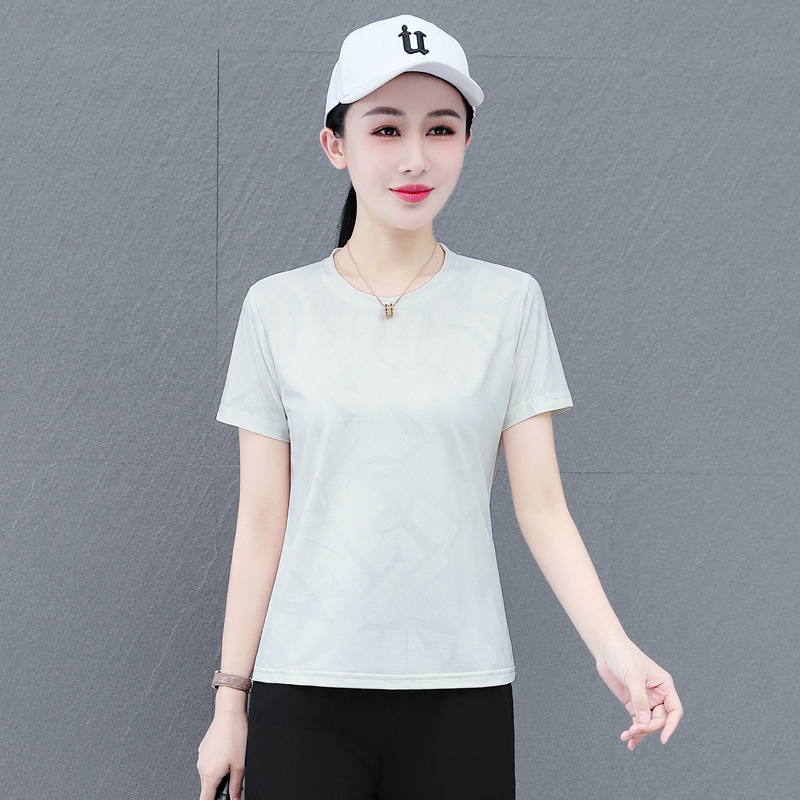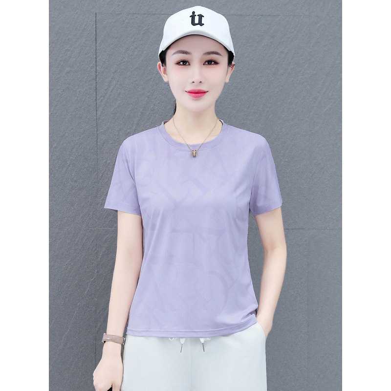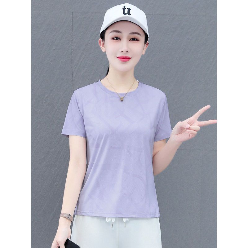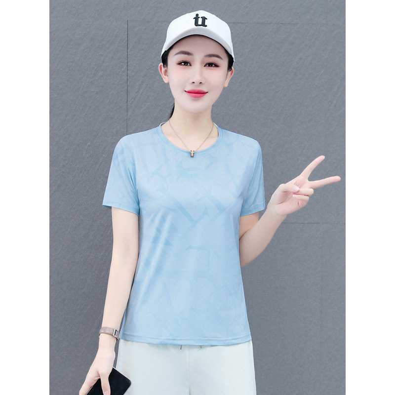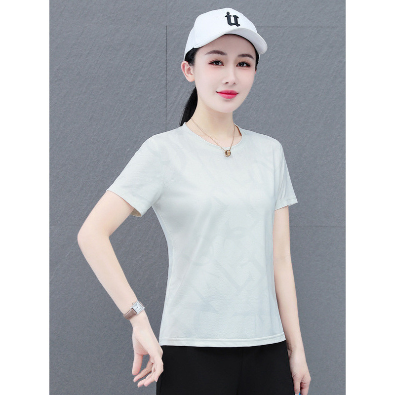 Главная страница > Быстросохнущая женская футболка с короткими рукавами, новая летняя тонкая футболка из ледяного шелка, свободный спортивный топ большого размера для бега и фитнеса с половиной рукавов