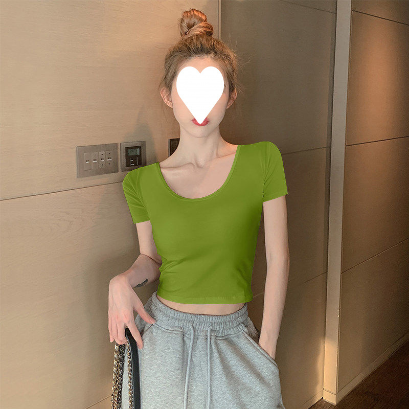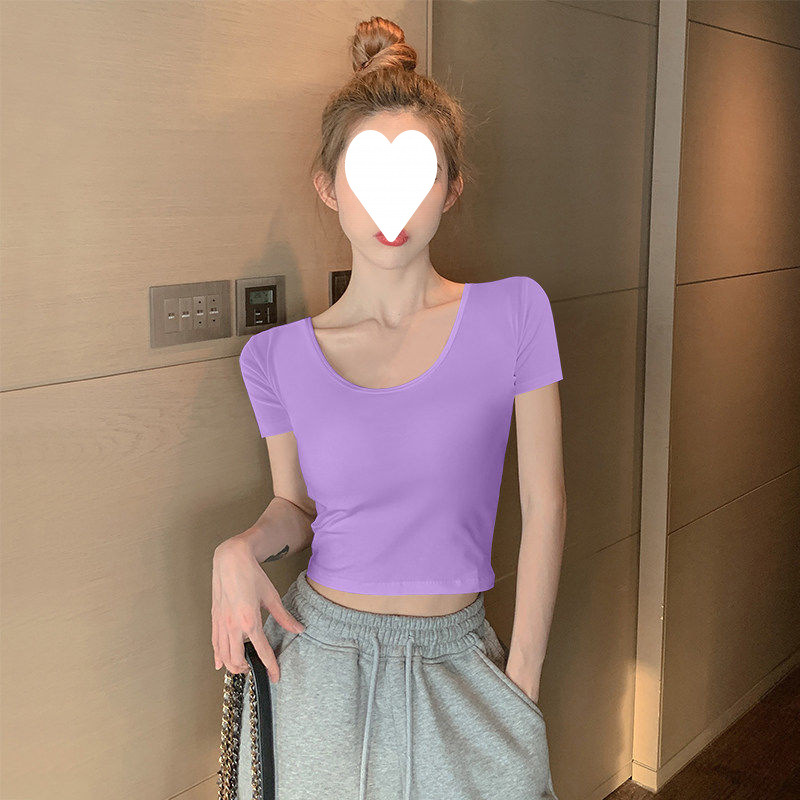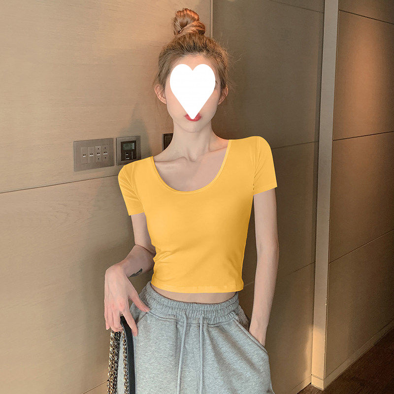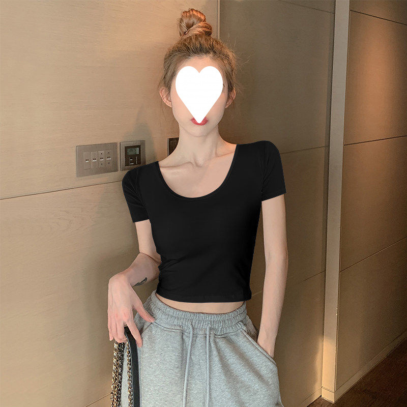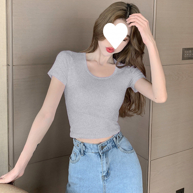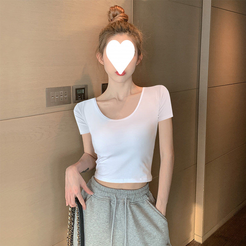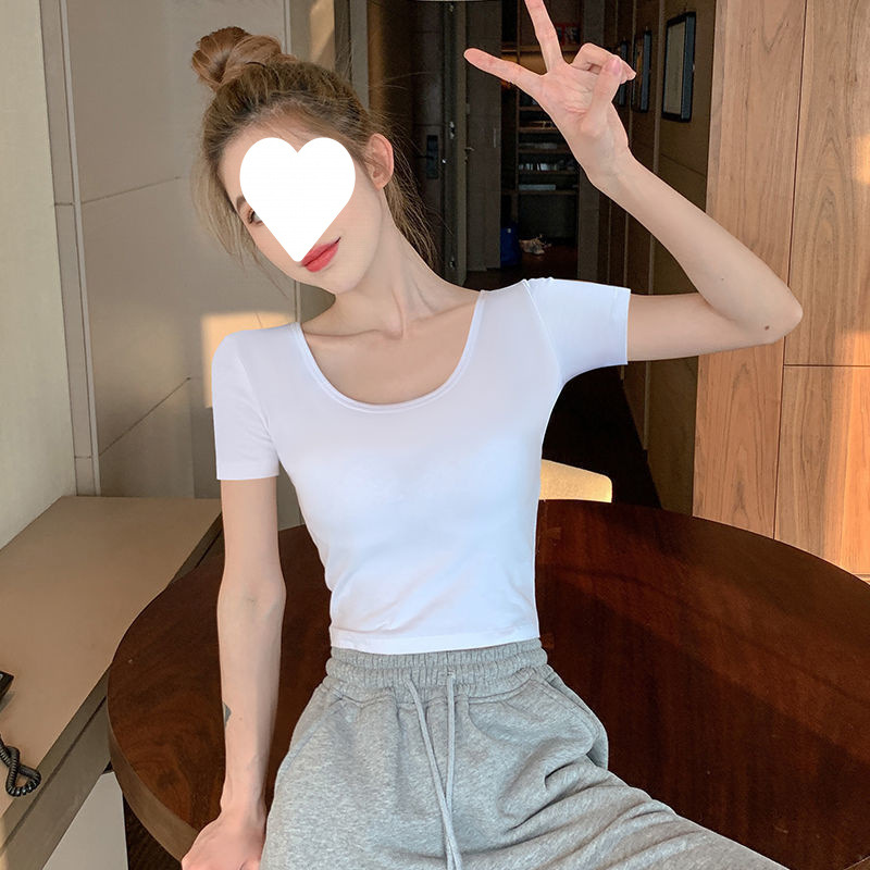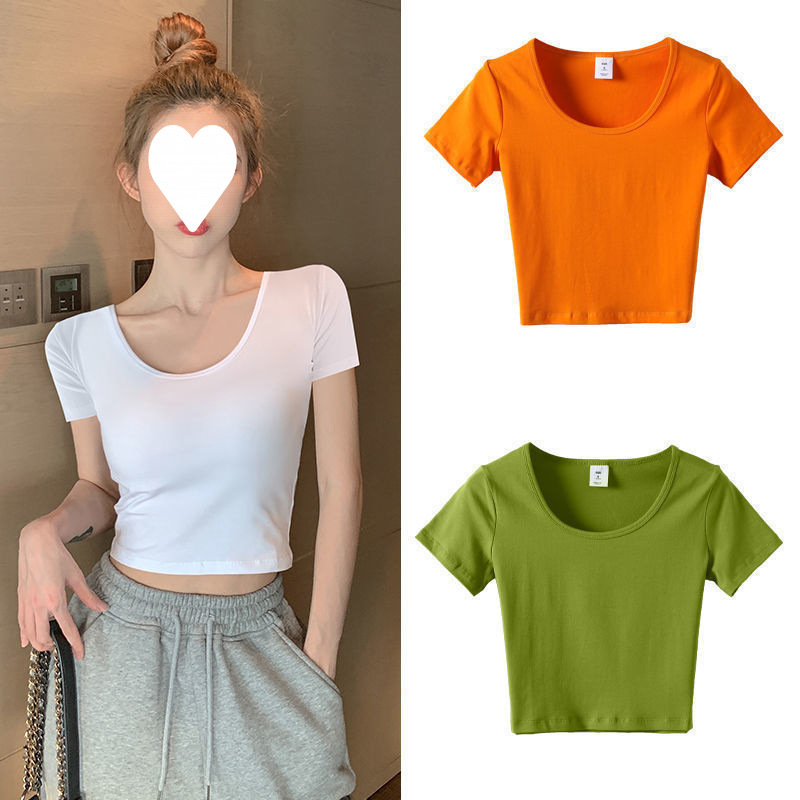 Главная страница > Белый короткий топ женский с короткими рукавами однотонный, 3D рубашка 2025 новая модная маленькая футболка