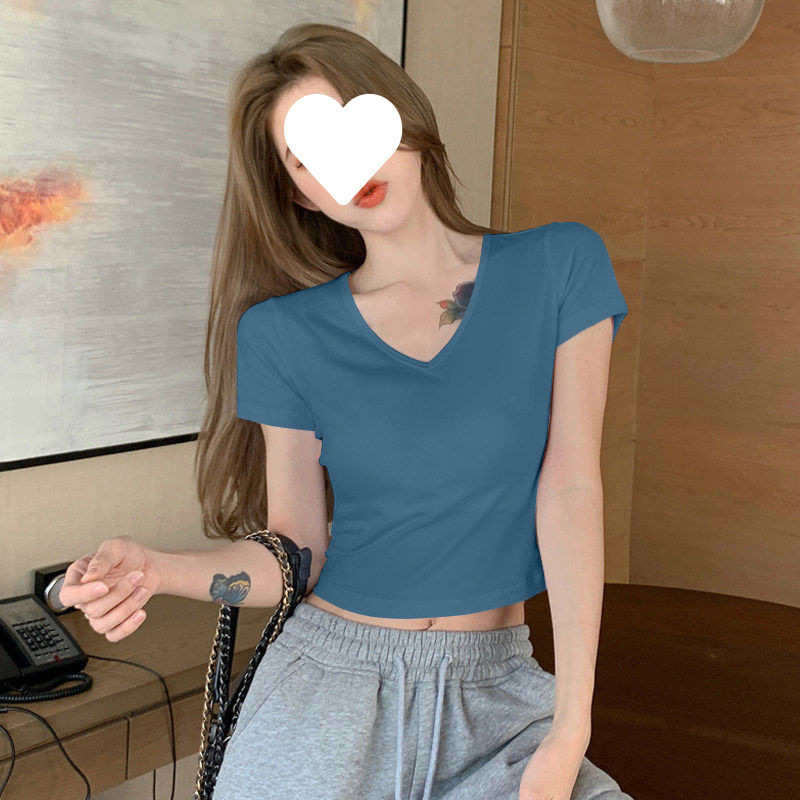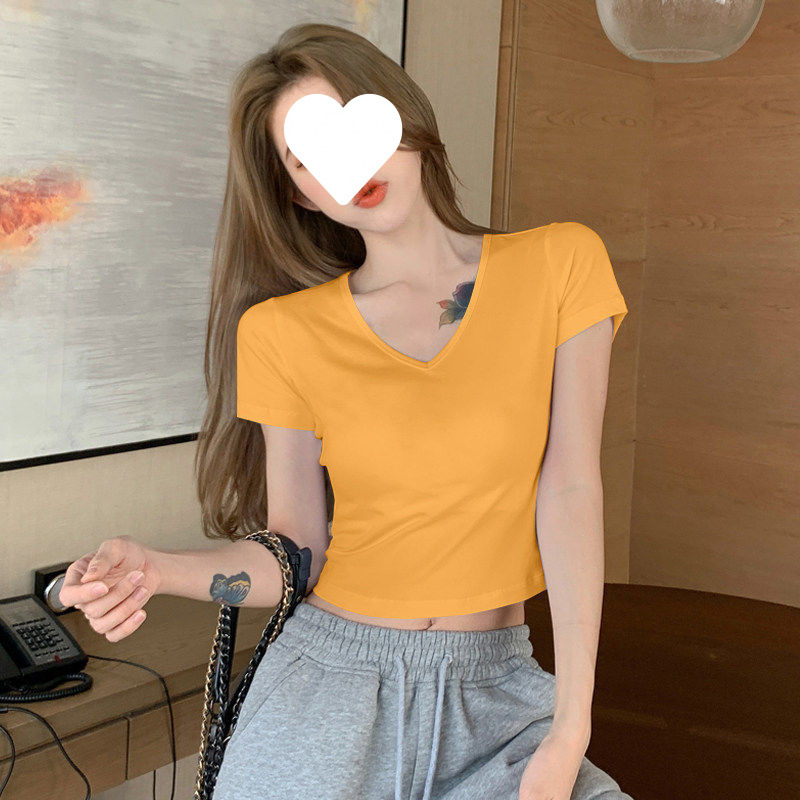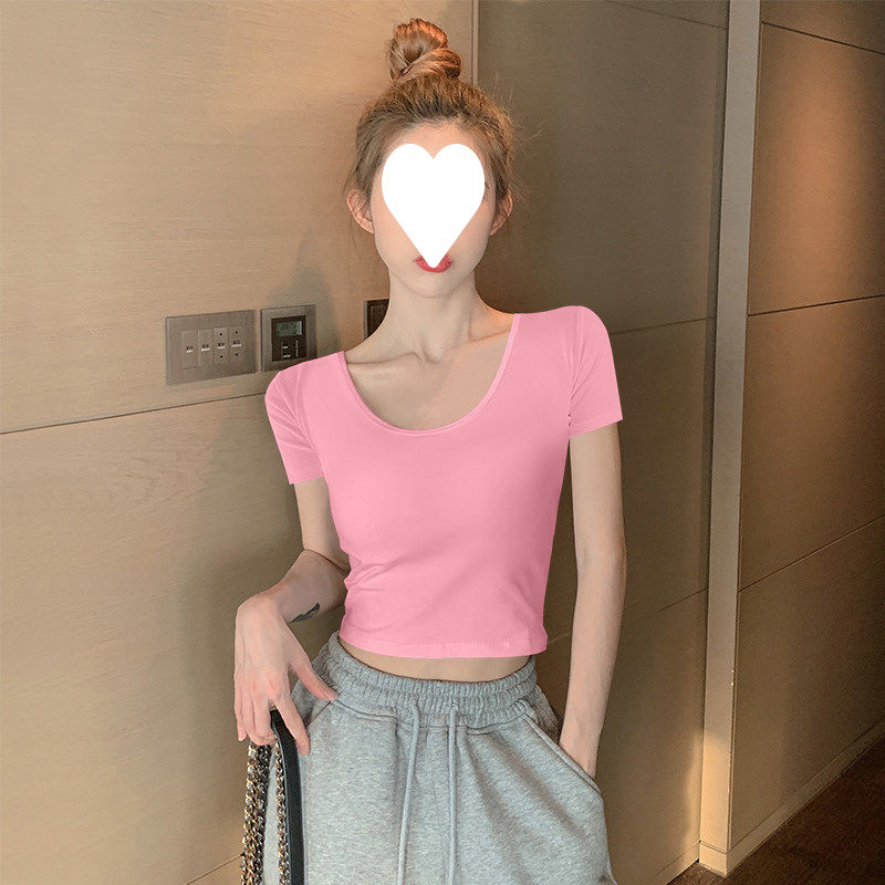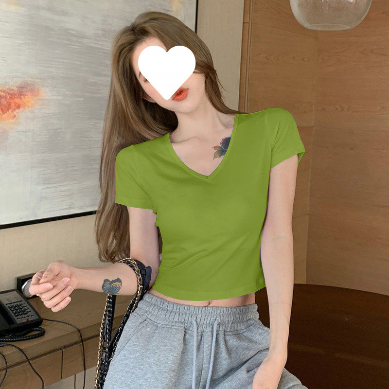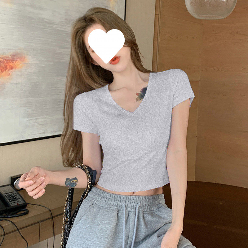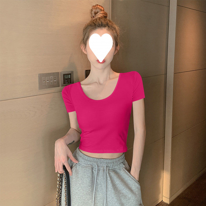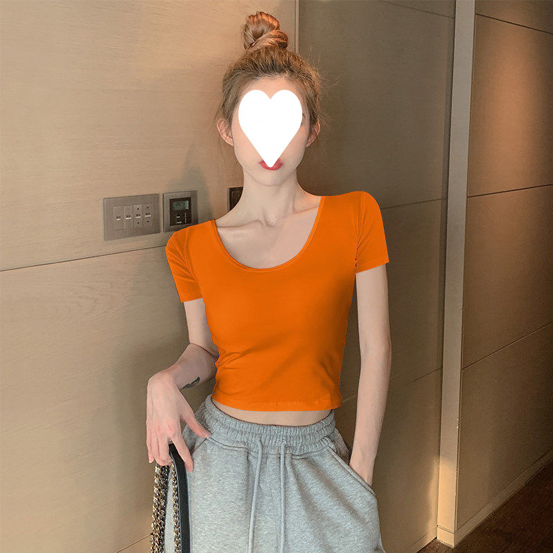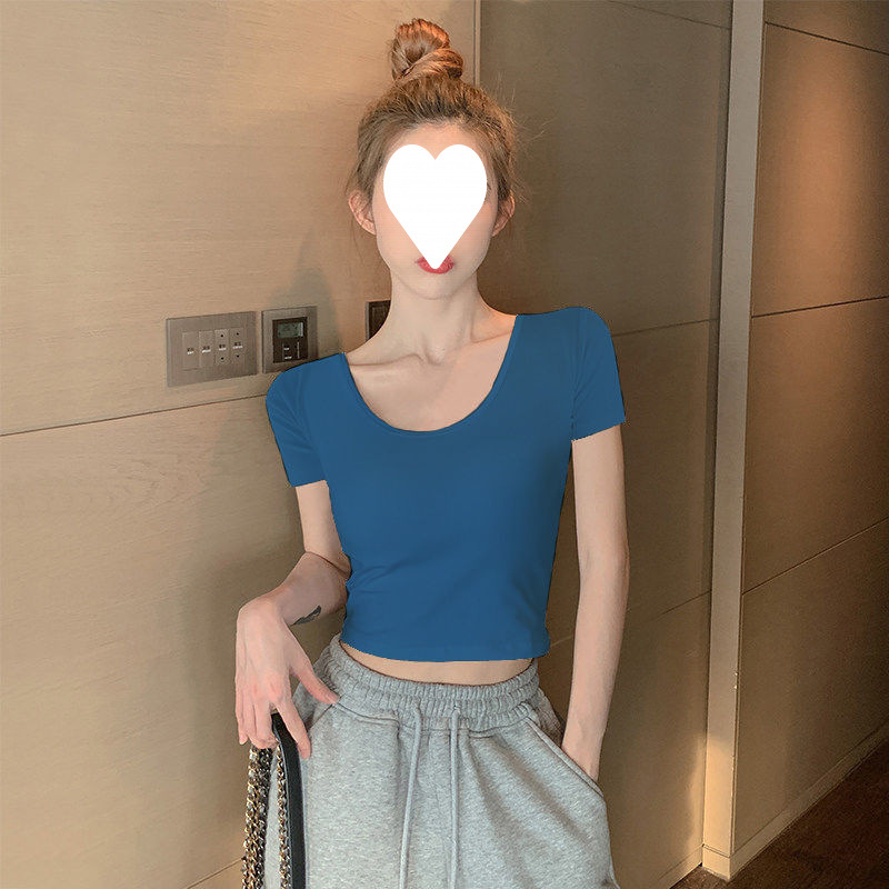 Главная страница > Белый короткий топ женский с короткими рукавами однотонный, 3D рубашка 2025 новая модная маленькая футболка