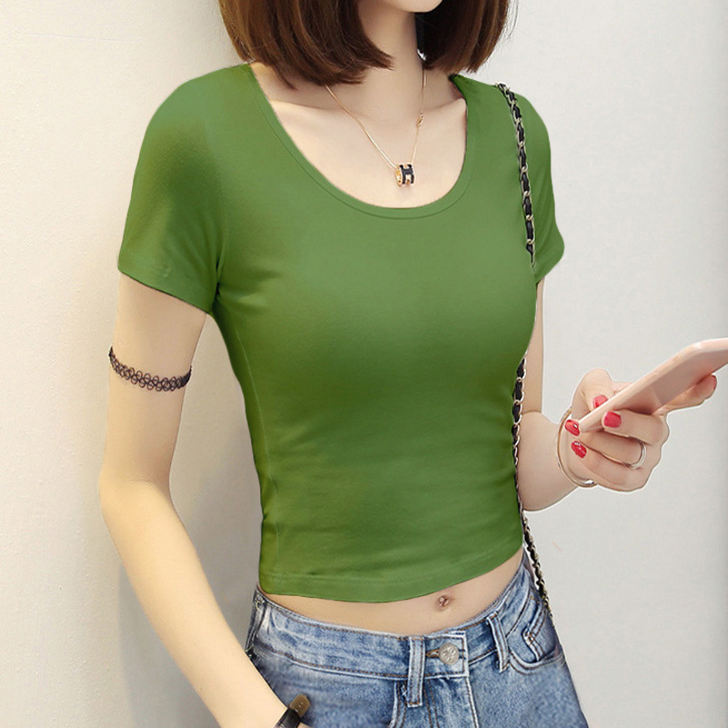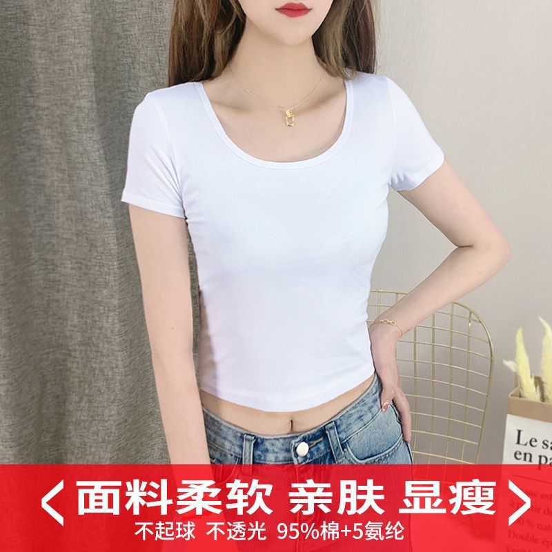 Главная страница > Летняя хлопковая короткая футболка для женщин, студенческий белый топ с короткими рукавами, облегающий, облегающий, обнажающий пупок, новый стиль, обнажающий талию