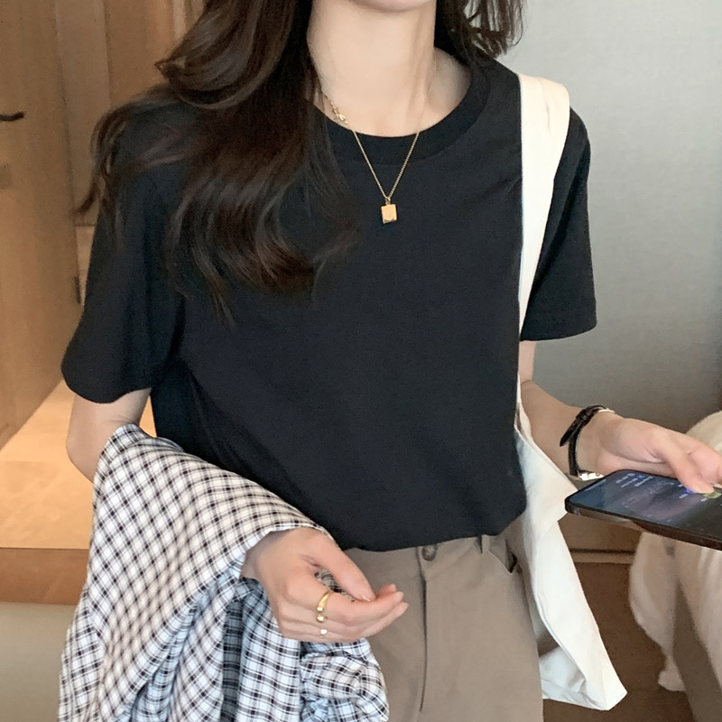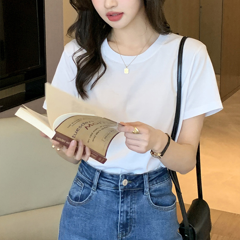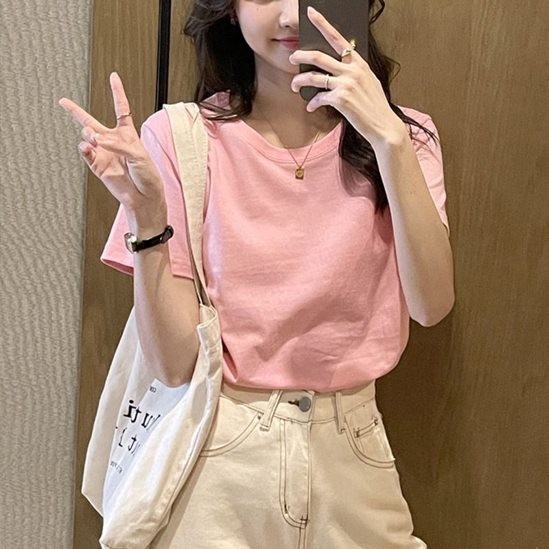 Главная страница > Простая футболка в корейском стиле ins style с правым плечом, розовый мягкий восковой хлопковый топ 2025, весенне-летний утягивающий элегантный женский короткий рукав