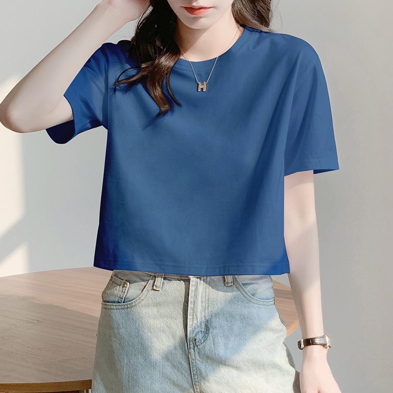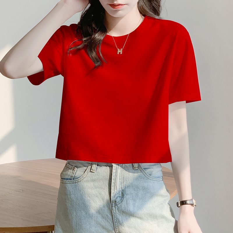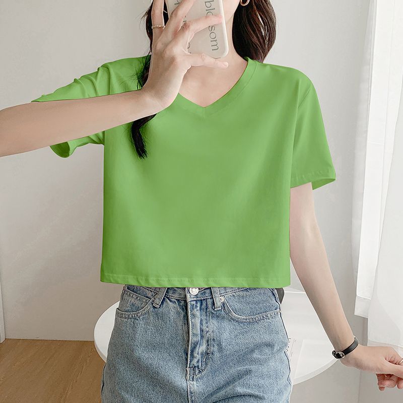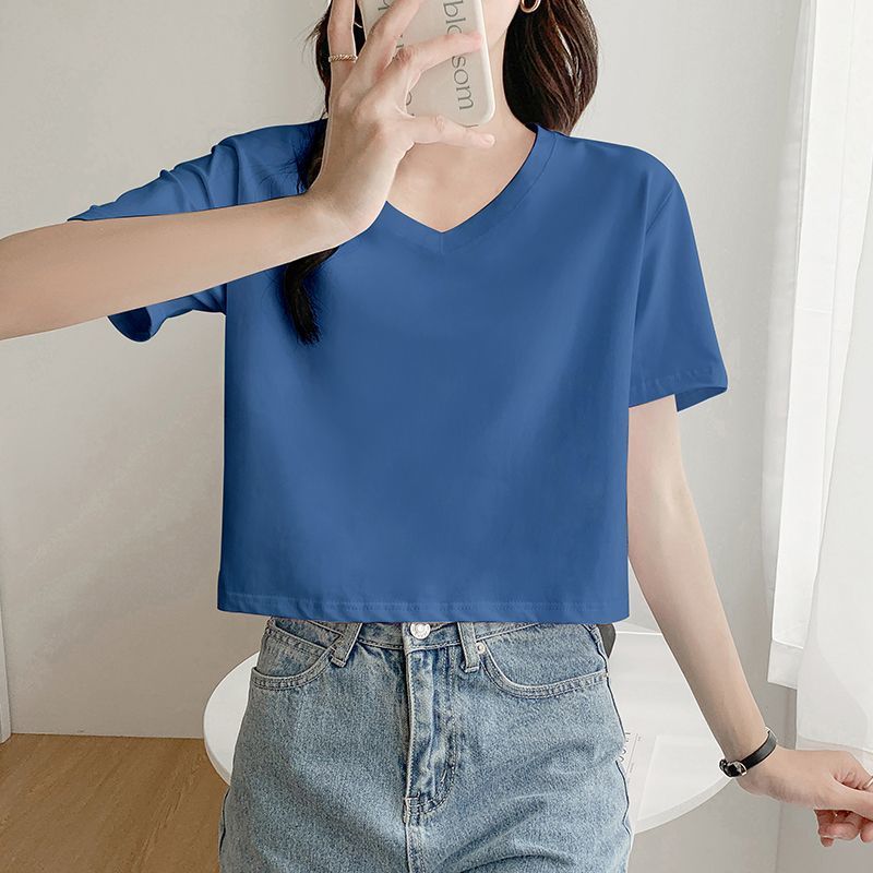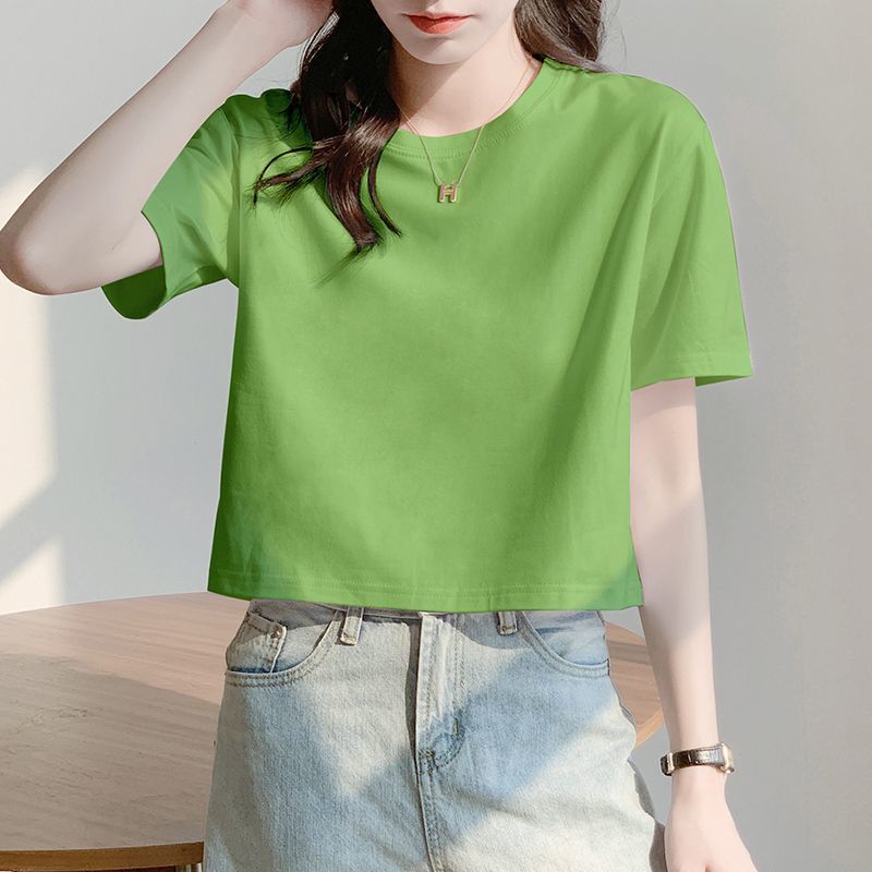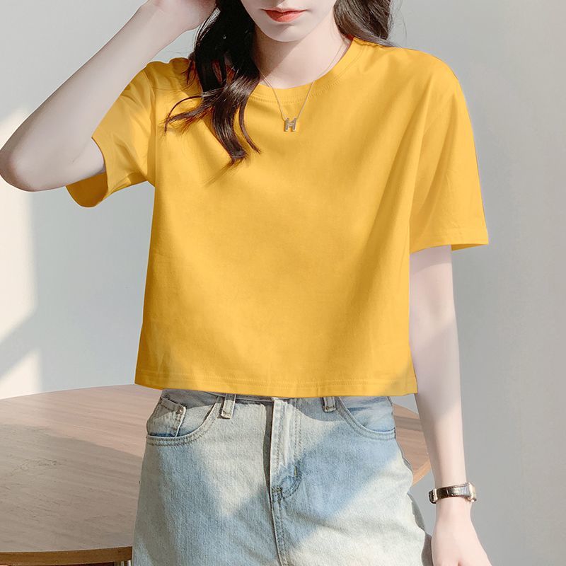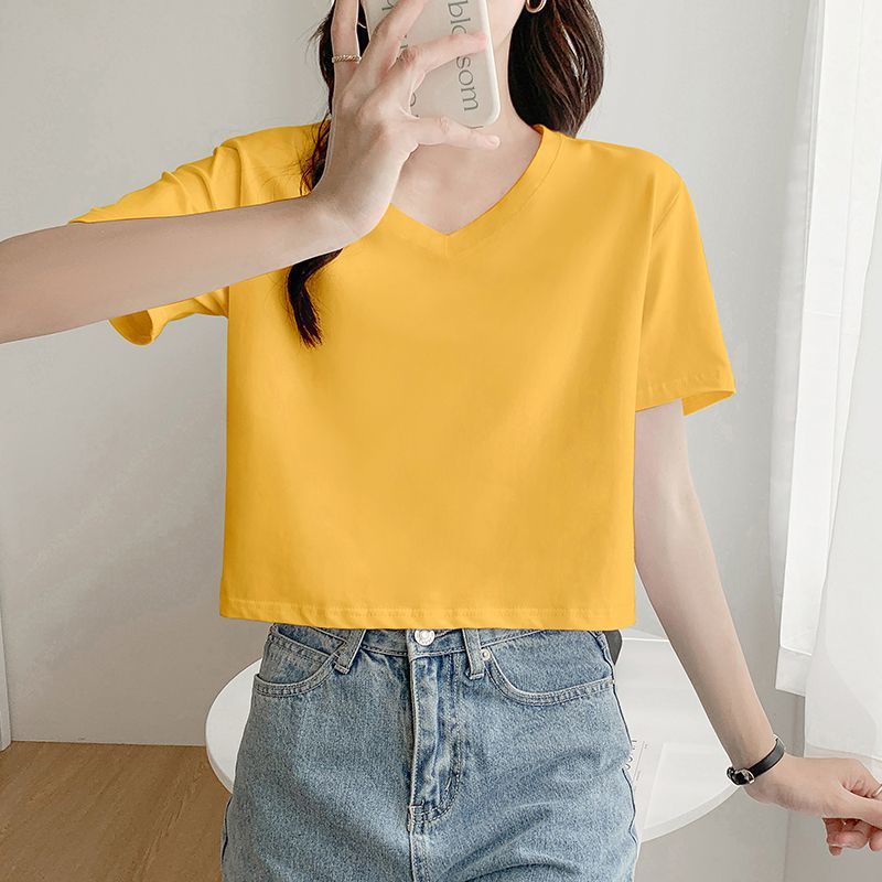 Главная страница > Белая свободная короткая футболка, женская летняя футболка с короткими рукавами и высокой талией, обнажающая пупок, новый стиль, утягивающий топ
