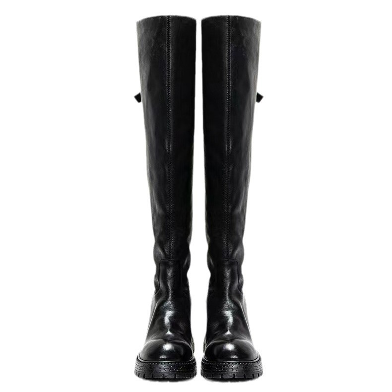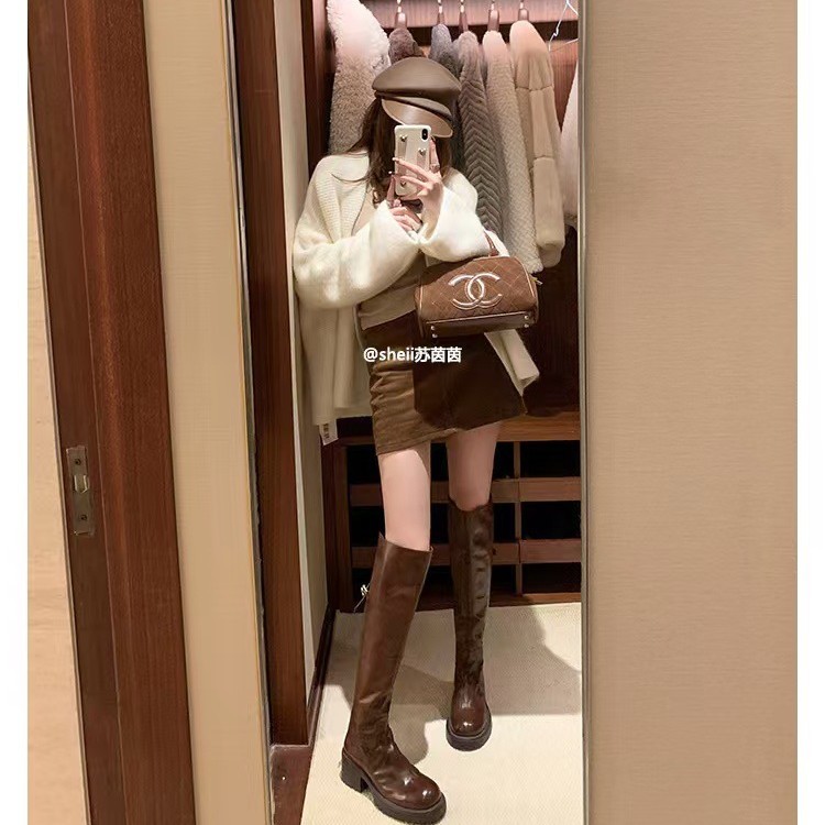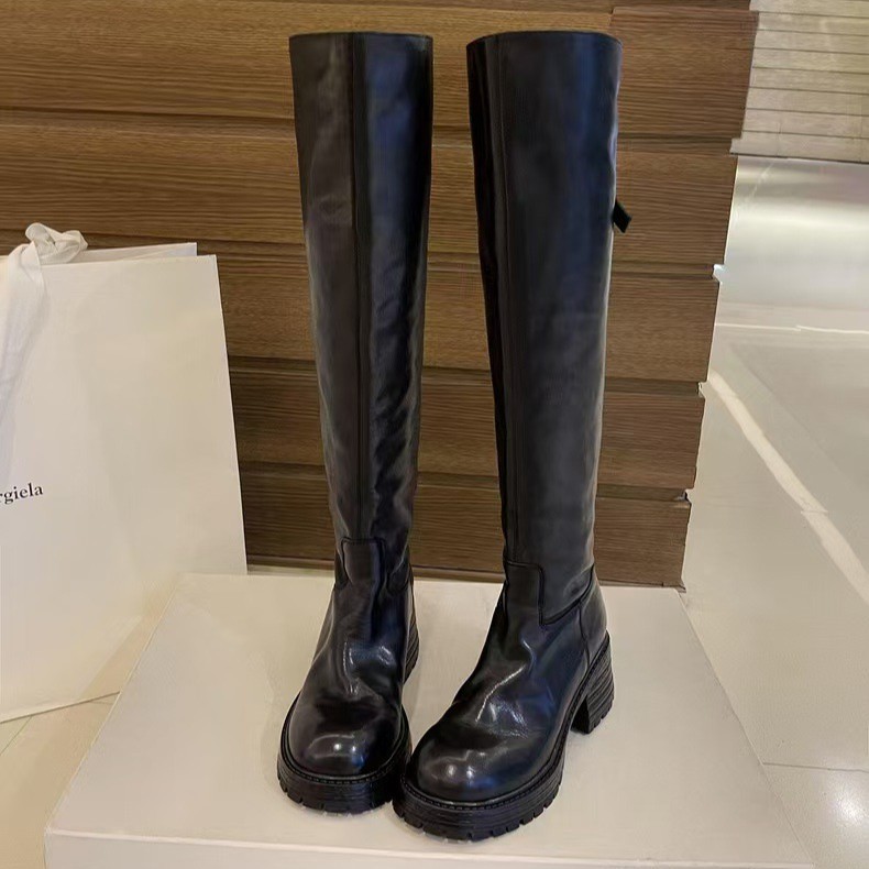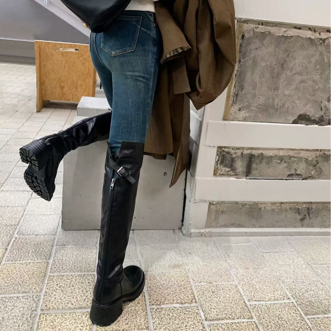 Главная страница > Ботинки в стиле знаменитостей: женские высокие сапоги из состаренной кожи с массивным каблуком, новинка зимы 2025 года, сапоги для верховой езды выше колена