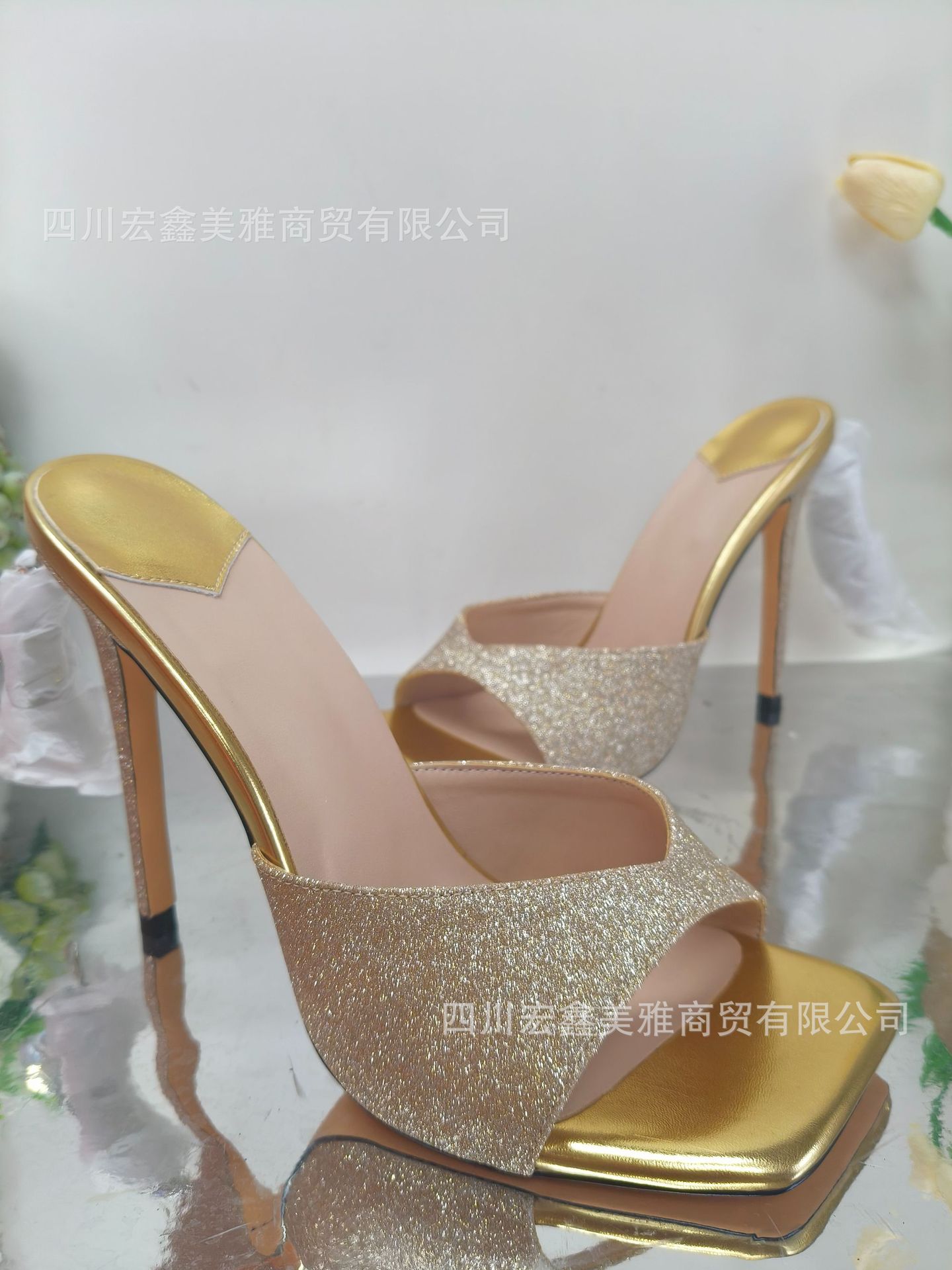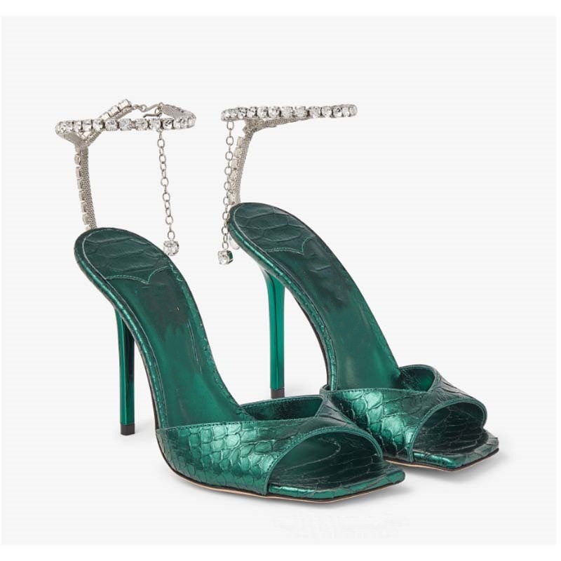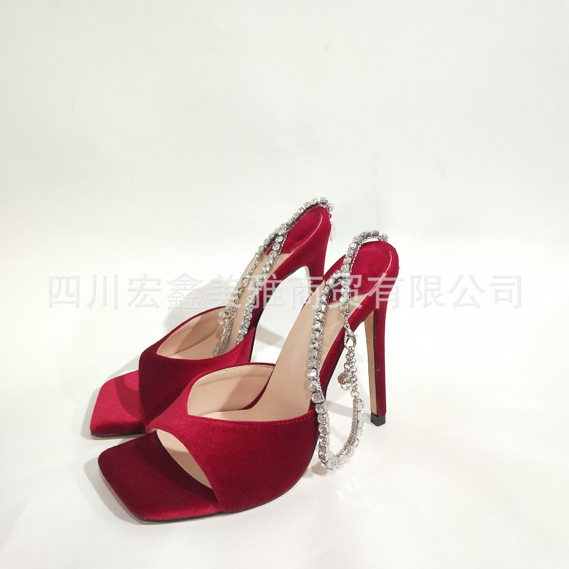 Главная страница > Женские босоножки-слипоны на очень высоком каблуке-шпильке с квадратным открытым носком, ажурным рисунком в виде рыбки, цепочкой и большими размерами, весна 2025 года.