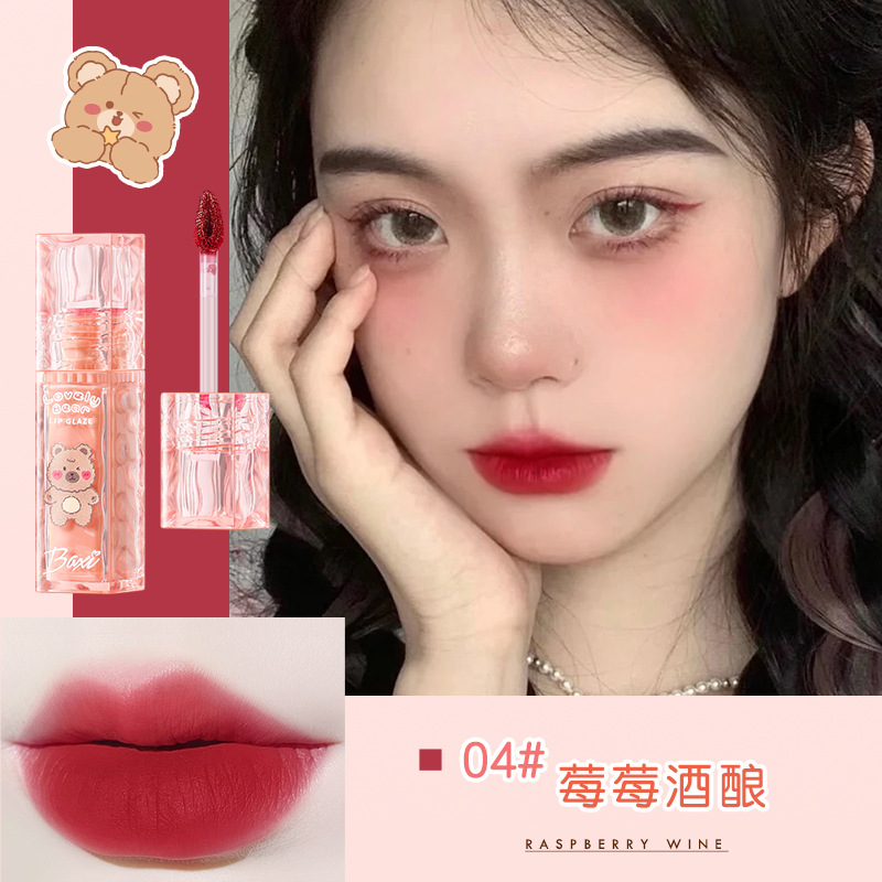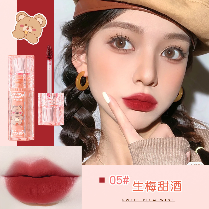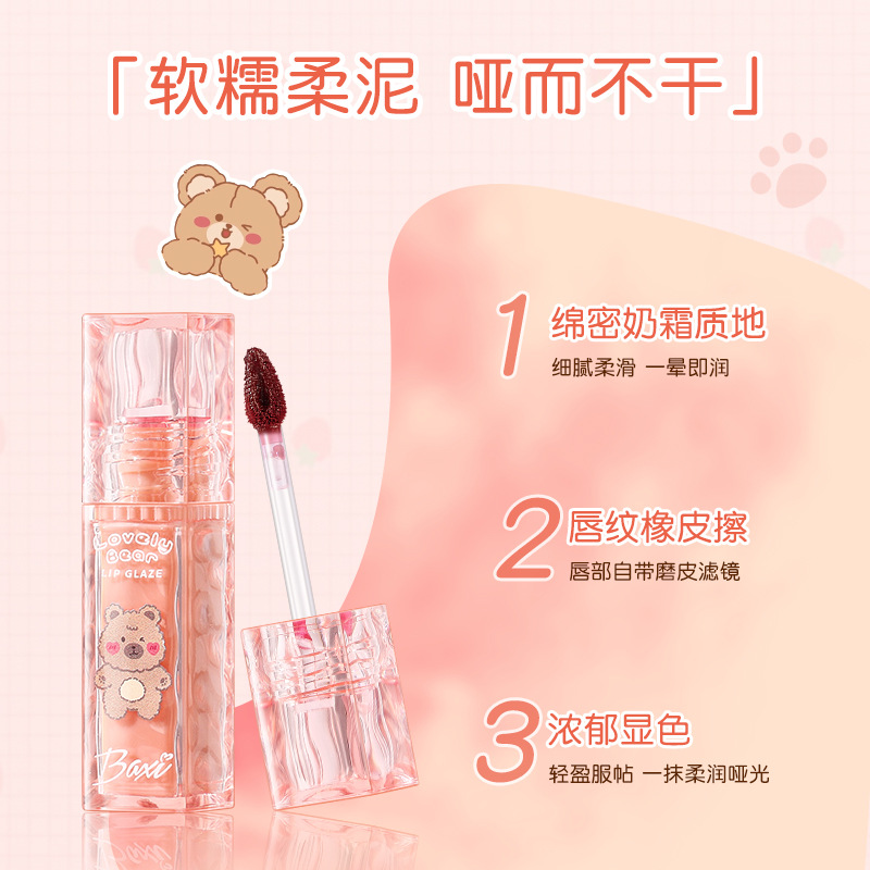 Baxi Baxi милый молочный медведь Baxi мягкий туман грязь для губ нелегко приклеивается к чашке матовая отбеливающая ежедневная доступная глазурь для губ для девочек
