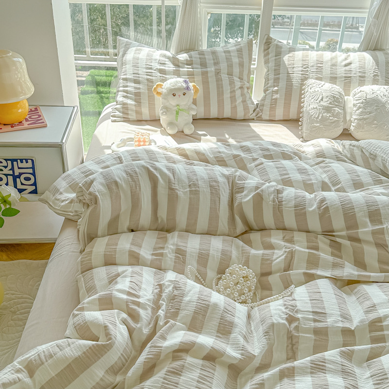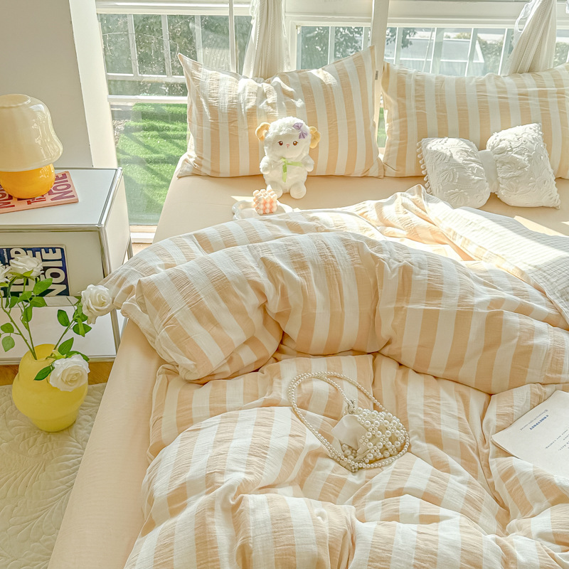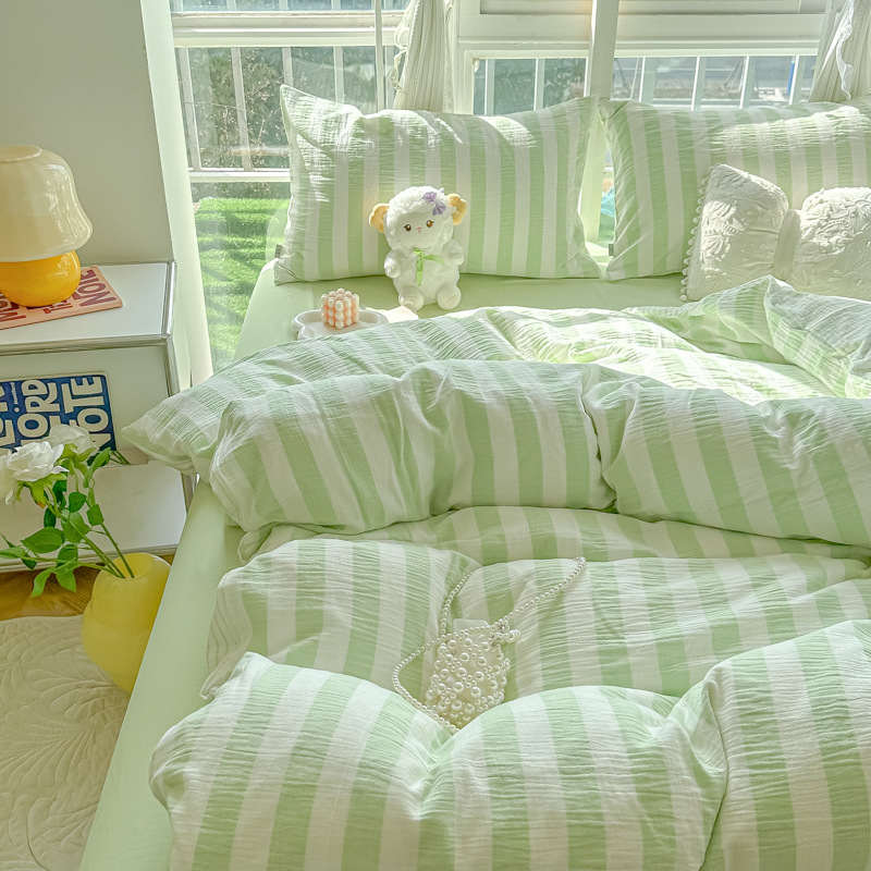 Мягкий и вощеный хлопковый комплект из четырех предметов, чистый хлопок, маленькое свежее постельное белье, простыни, односпальный пододеяльник, комплект из трех предметов для общежития, 4