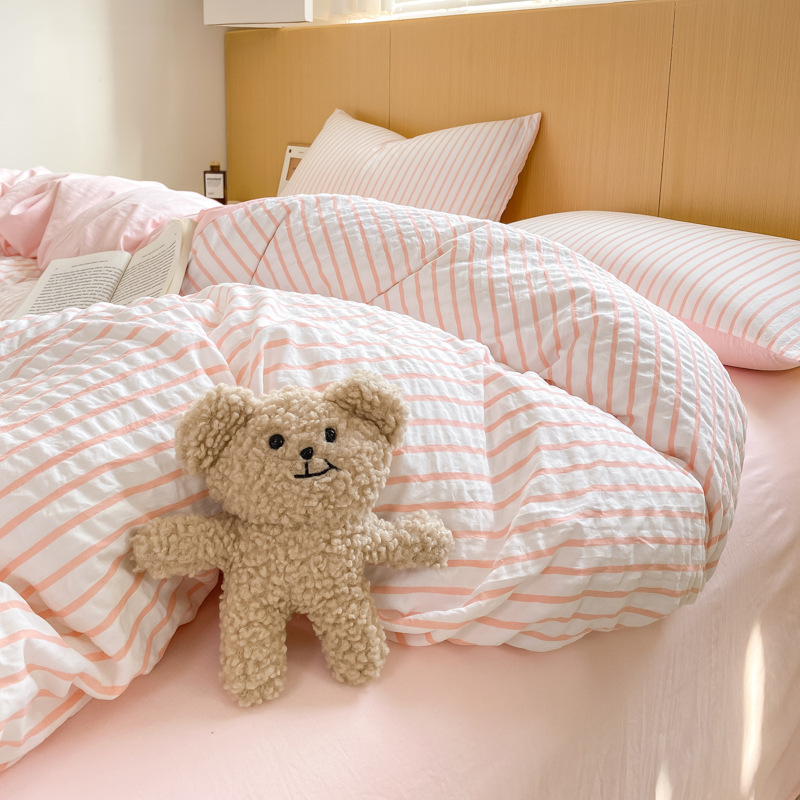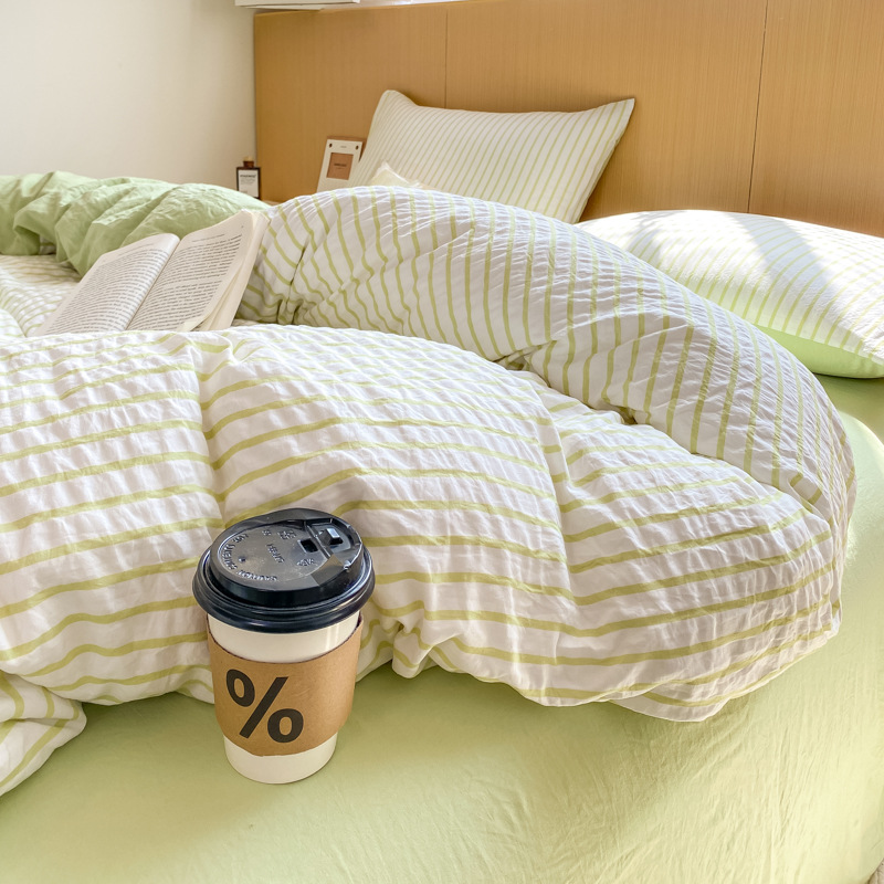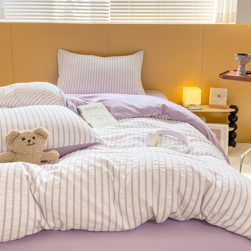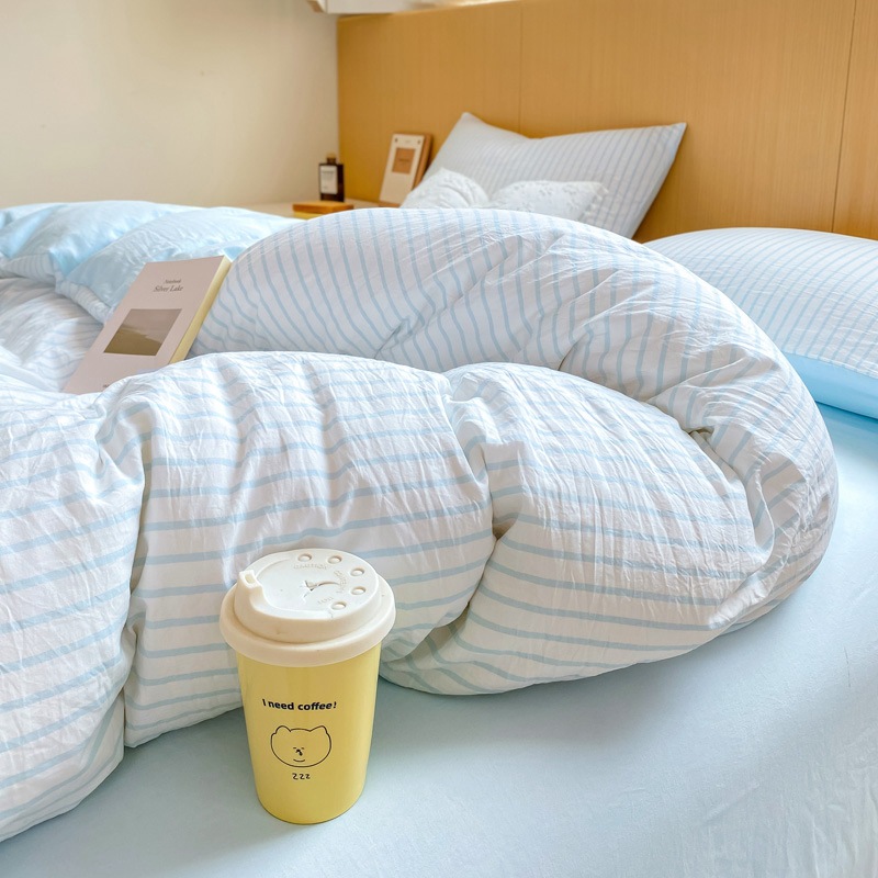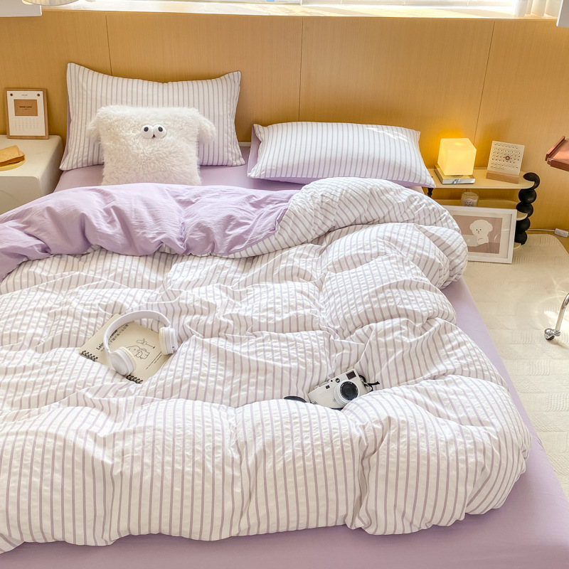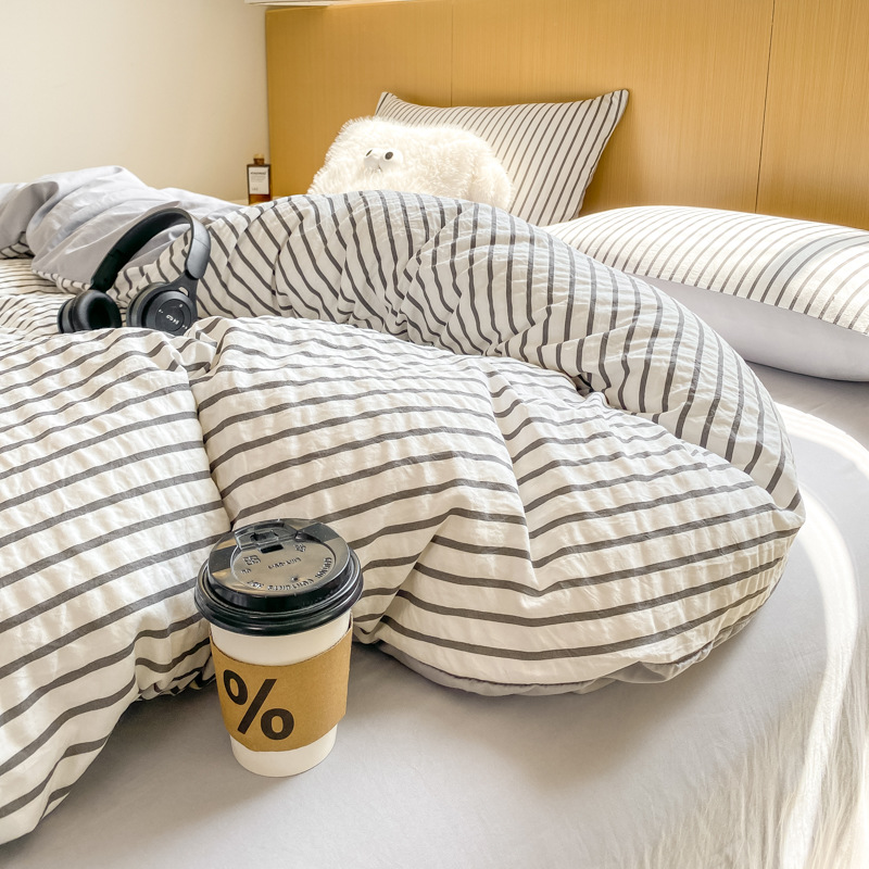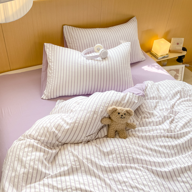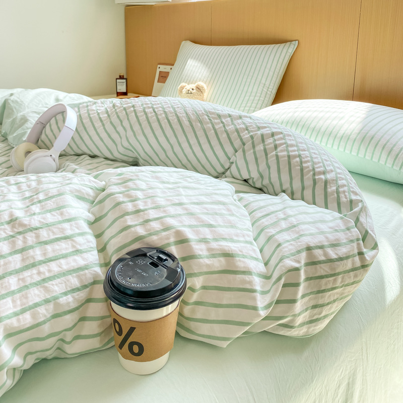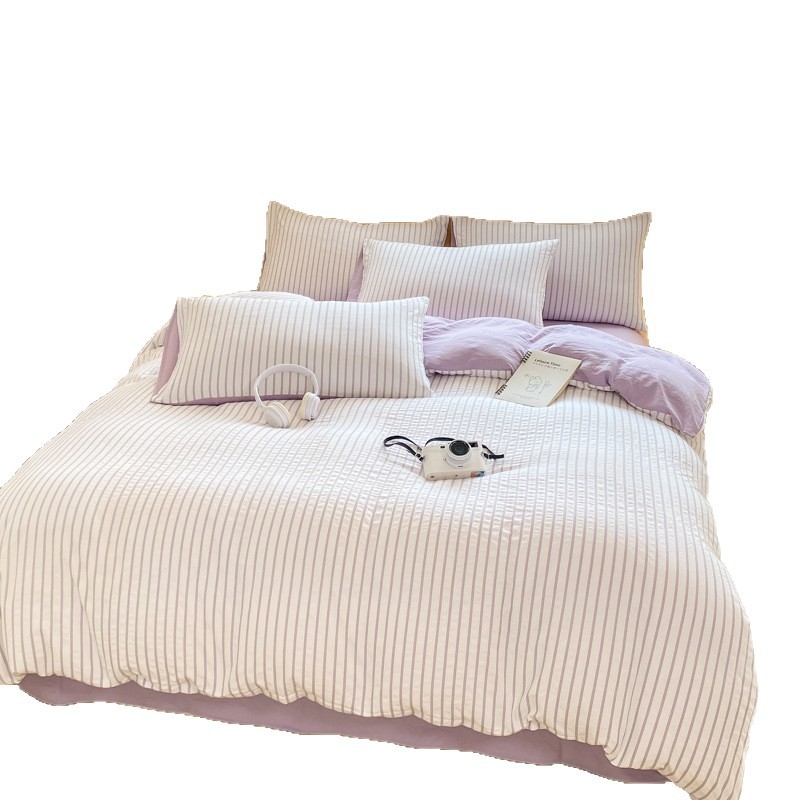 Главная страница > 2025 новый комплект из четырех предметов из мытого хлопка в простую полоску для дома, студенческого общежития, простыни на односпальную и двуспальную кровать, пододеяльник, комплект из трех предметов
