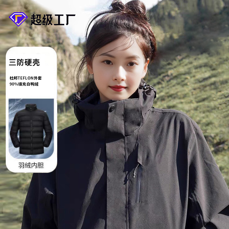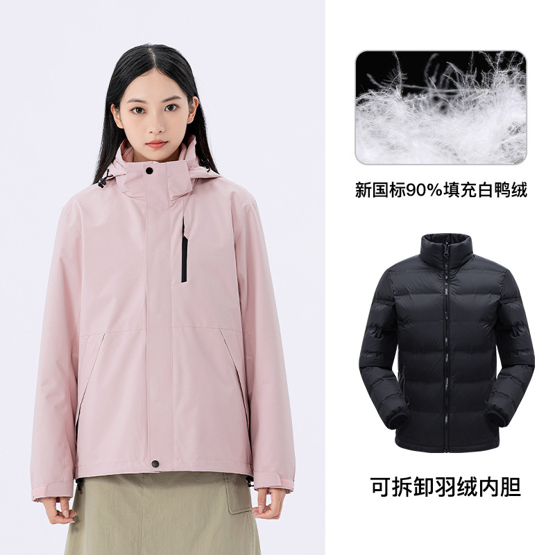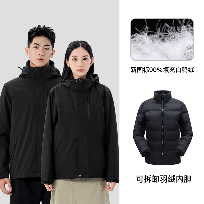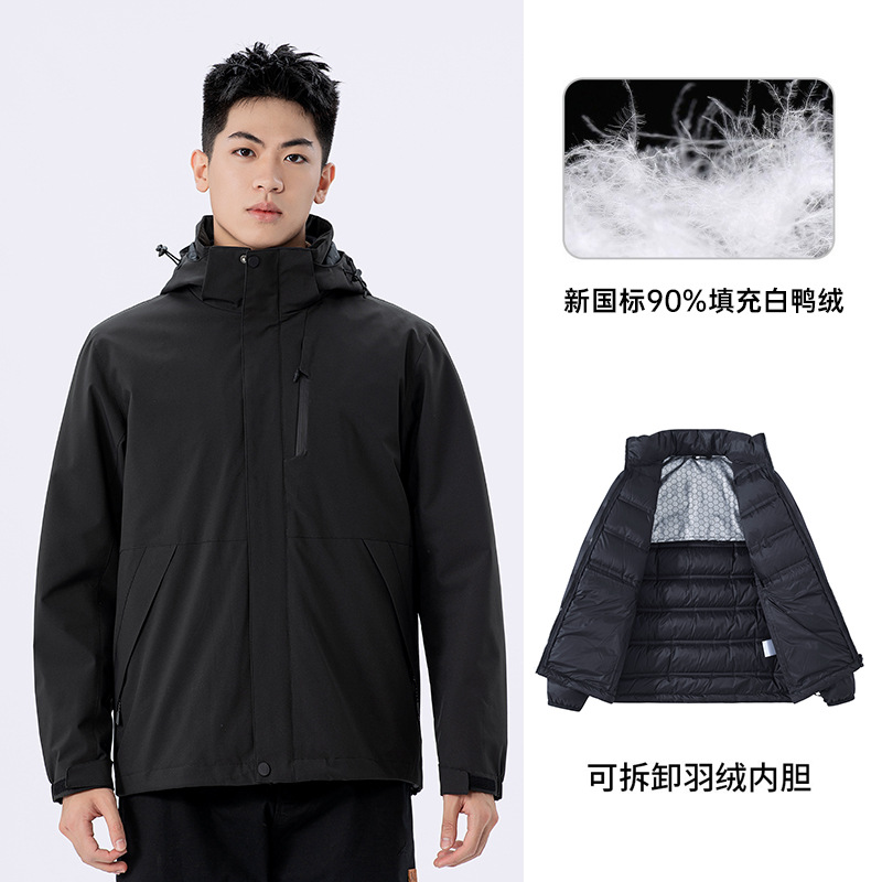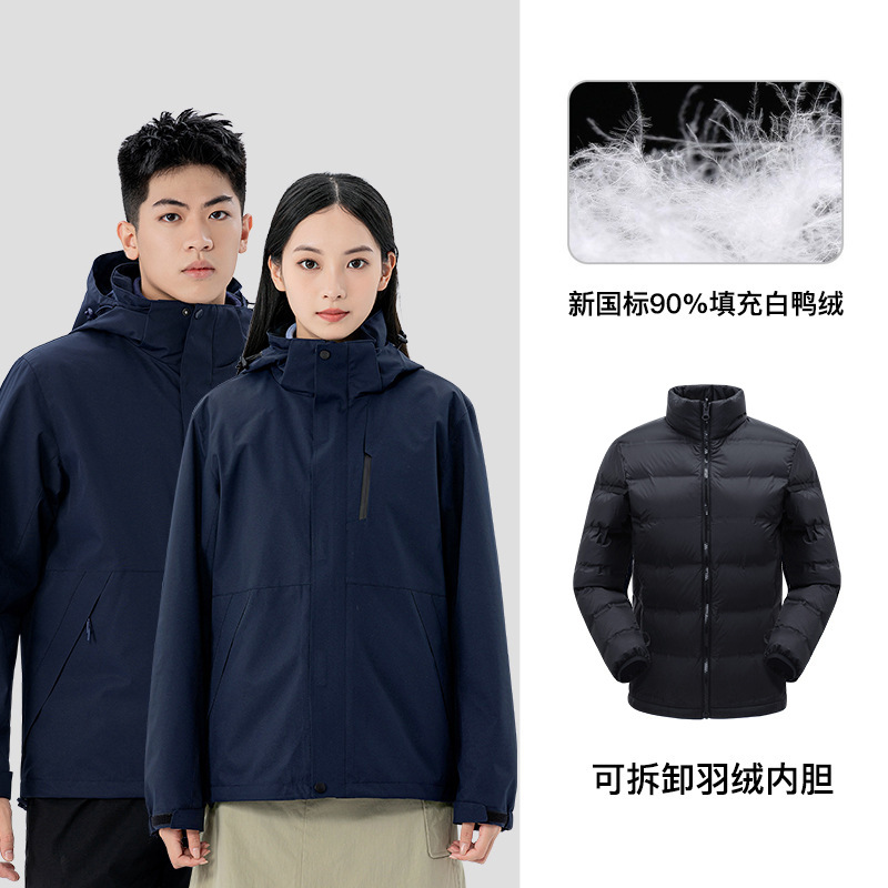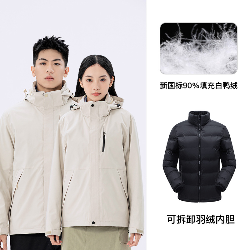 Мужская и женская куртка 3-в-1 с отстегивающимся наполнителем из белого утиного пуха и тканью DuPont для альпинизма и зимних видов спорта.