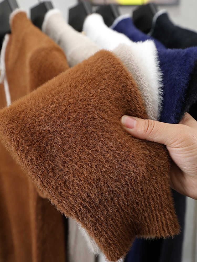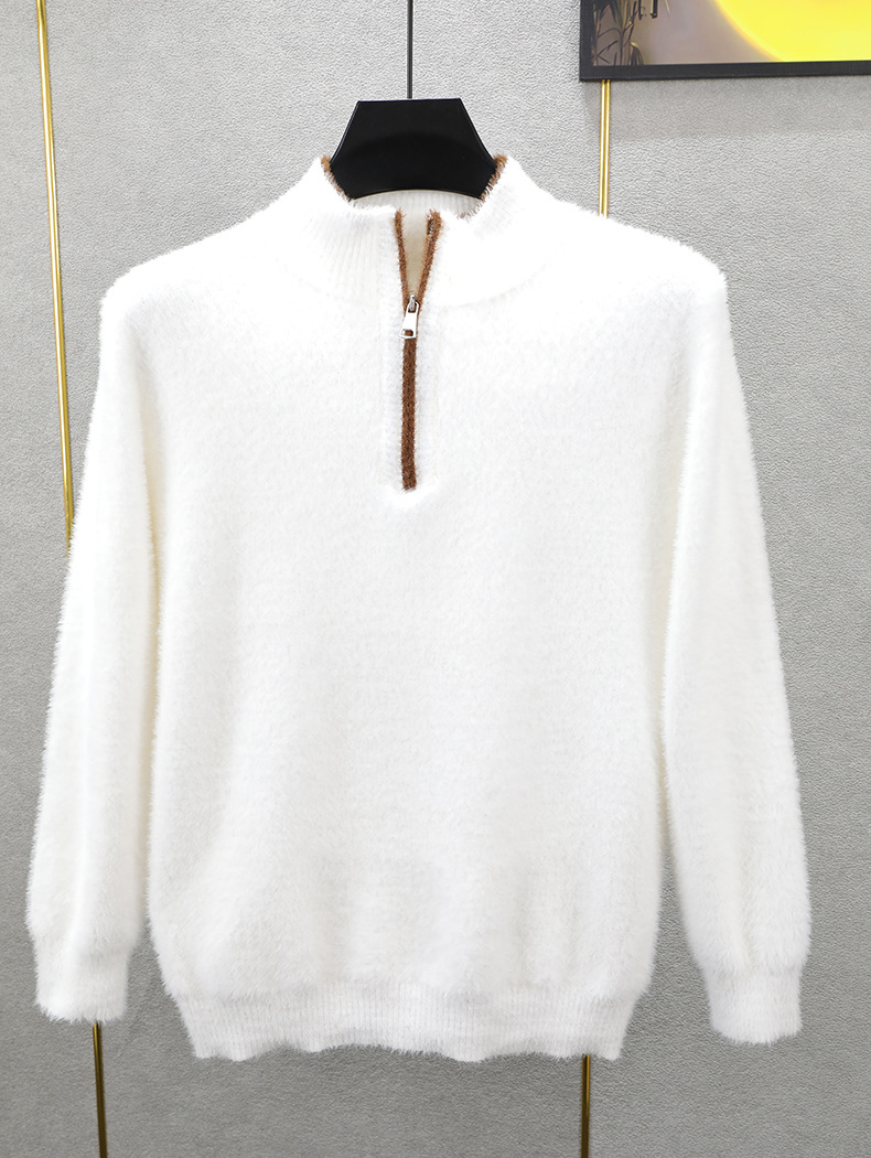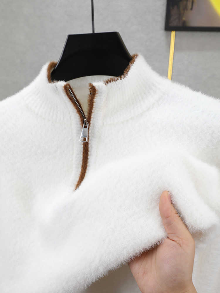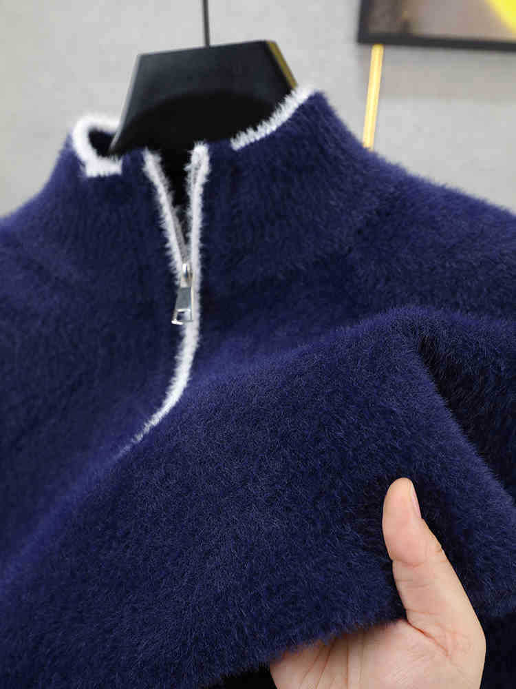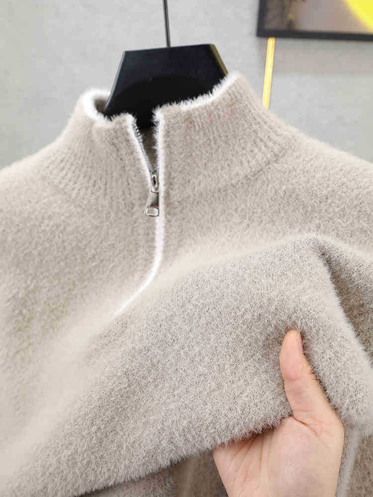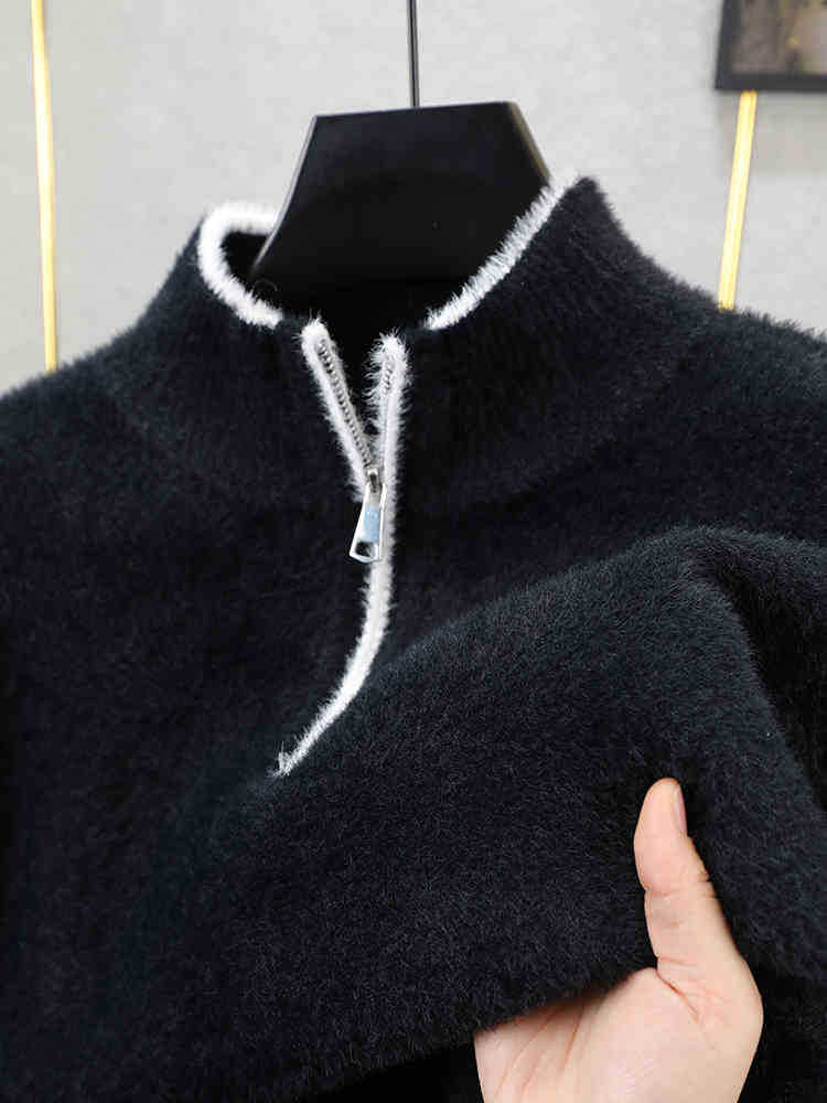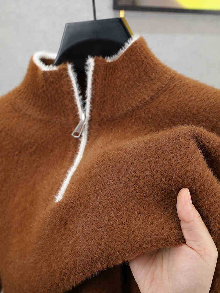 Главная страница > Норковый бархатный свитер мужской 2024 осень и зима новый бархат утолщенные полурны на молнии с высоким воротником мужской вязаный свитер