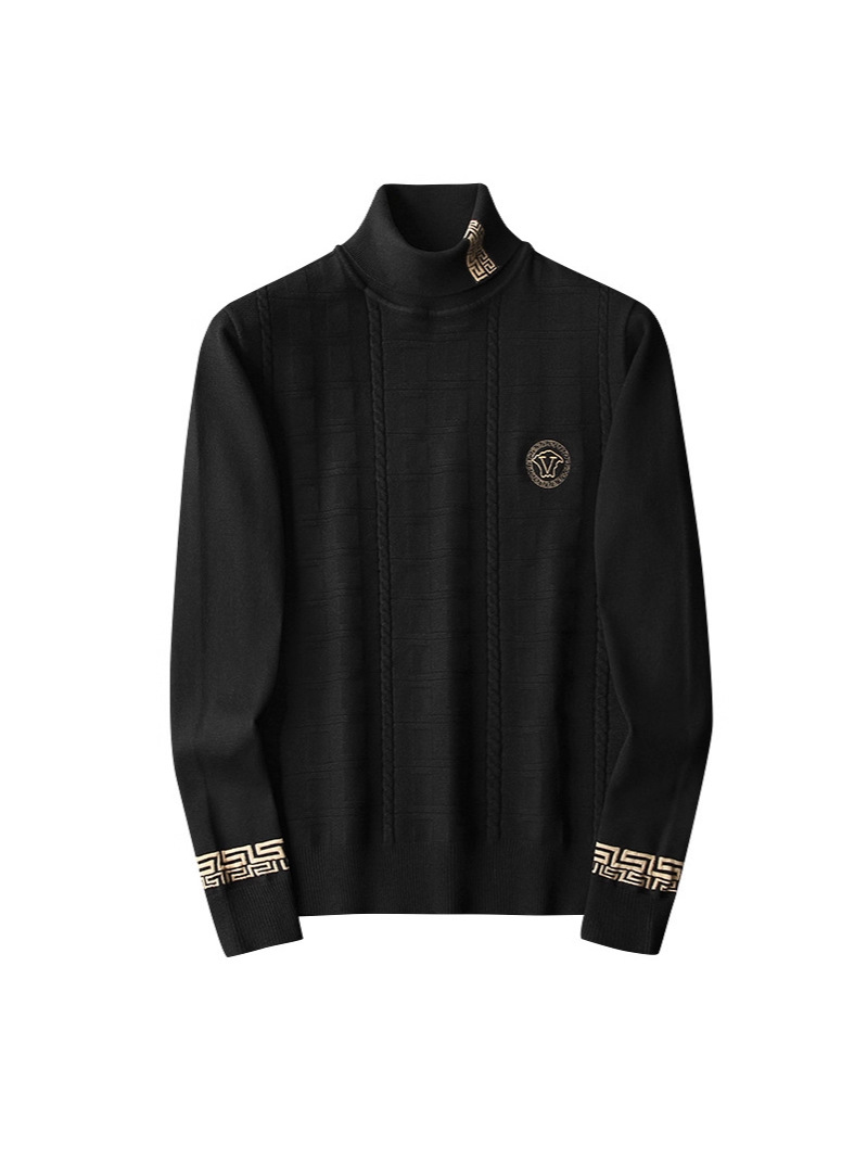 Европейский вокзал 2024 новый мужской зимний толстый воротник свитер с вышивкой повседневный свитер трикотажный нижний свитер